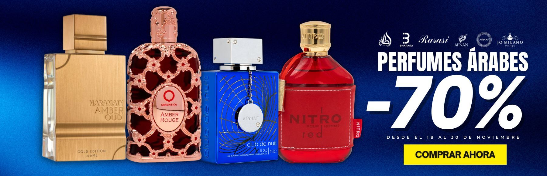 Si te apasiona el mundo de la perfumería, descubre nuestra colección de perfumes árabes para hombre y perfumes árabes para mujer, creados con esencias intensas y sofisticadas que dejan una huella inconfundible. Fragancias exóticas y duraderas que combinan notas amaderadas, especiadas y dulces para un aroma único y envolvente.