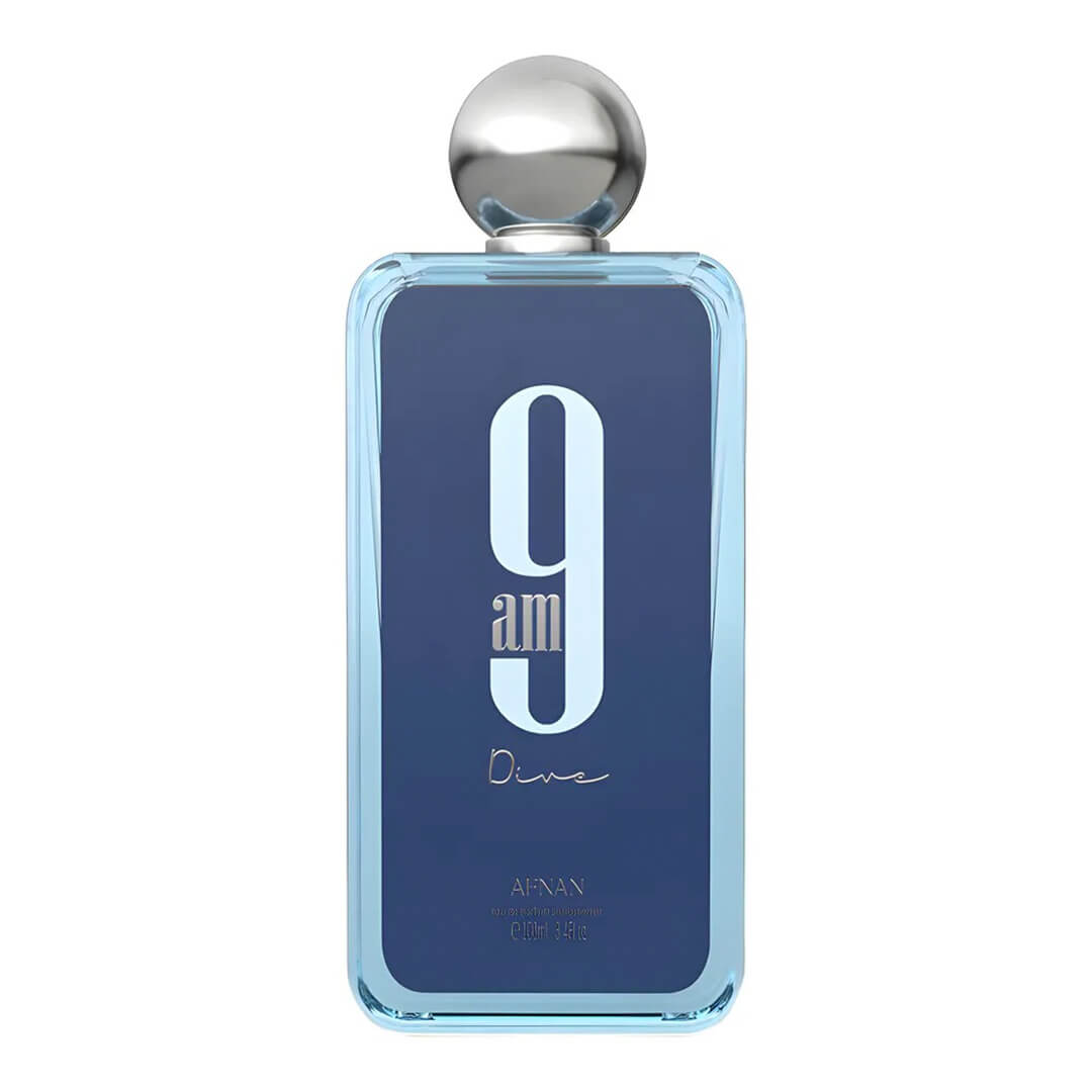 El 9am Dive de Afnan es una fragancia de la familia olfativa aromática acuática para hombres. Esta fragrancia es nueva. 9am Dive se lanzó en 2022. Las Notas de Salida son limón (lima ácida), menta, grosellas negras y pimienta rosa; las Notas de Corazón son manzana, incienso y cedro; las Notas de Fondo son jengibre, sándalo, pachulí y jazmín.