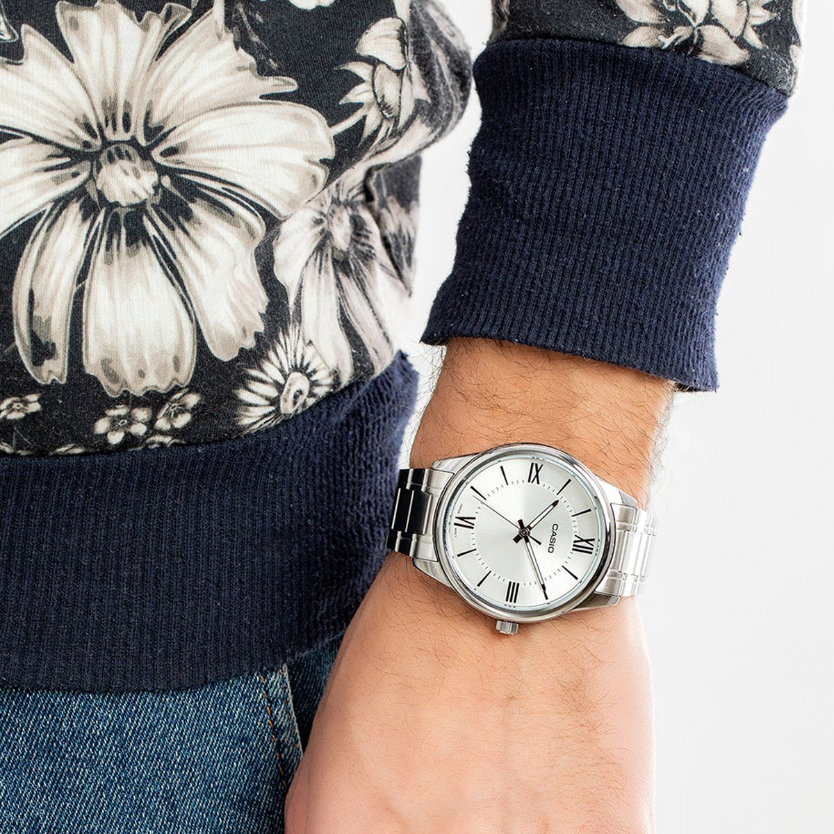 Reloj Casio CAS-60 plateado MTP-V005D-7B5UDF de moda con correa de acero inoxidable, 100% original de fábrica, garantía 1 año, el acompañante perfecto para el hombre actual.