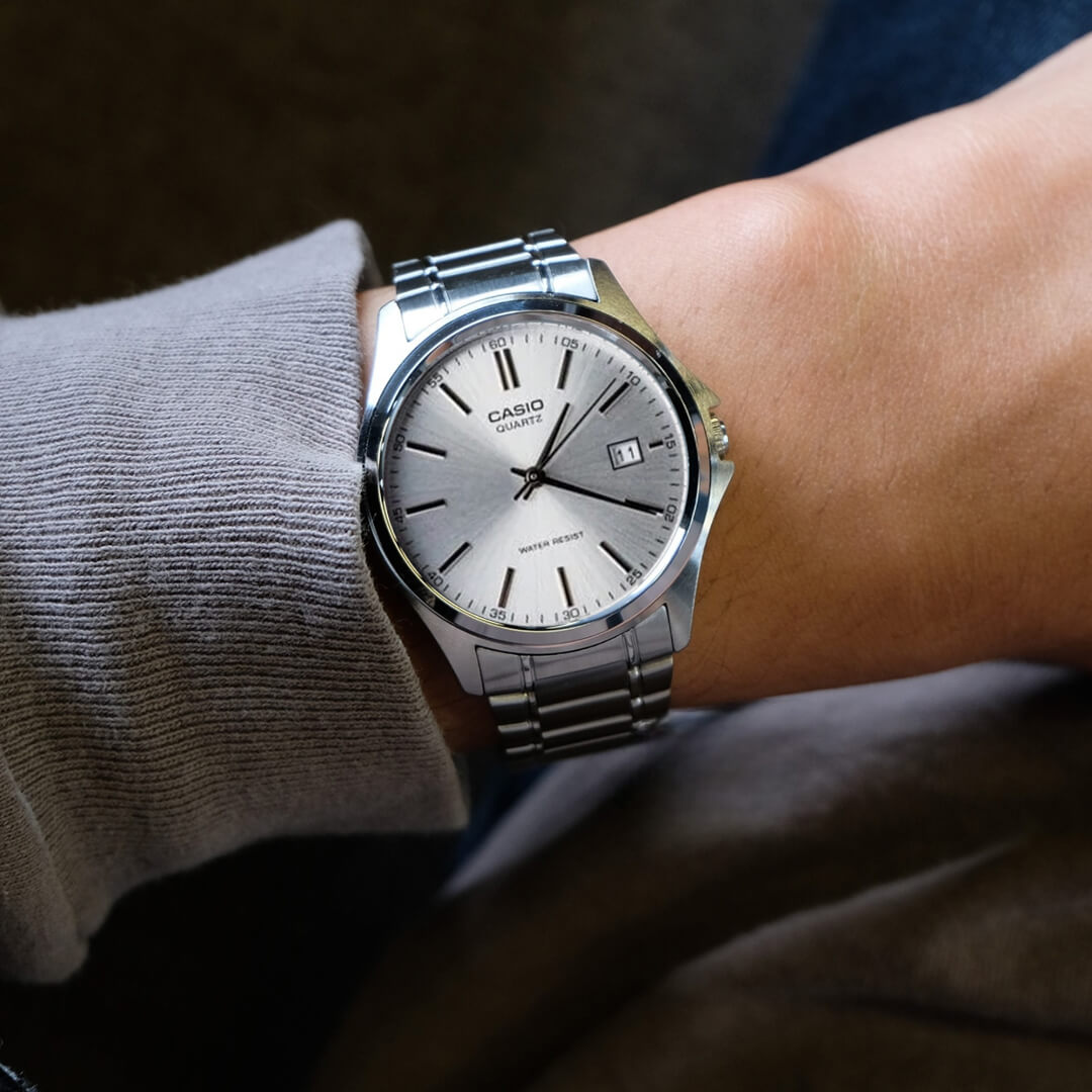 El Casio MTP-1183A-7ADF es un reloj analógico clásico diseñado para el hombre que busca estilo, funcionalidad diaria y durabilidad en una sola pieza. Su esfera clara, correa de acero inoxidable y visualización de fecha lo convierten en un aliado ideal para oficina, uso urbano y vestimenta formal.