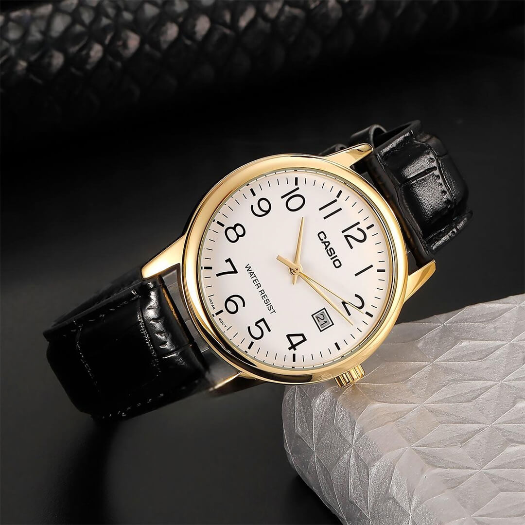 El Casio MTP-V002GL-7B2 pertenece a la elegante línea de relojes de vestir Casio diseñada para quienes buscan una apariencia clásica, versátil y funcional tanto en entornos profesionales como en el uso cotidiano. Su esfera equilibrada con números arábigos, creando una estética refinada que facilita la lectura del tiempo y aporta un estilo atemporal que nunca pasa de moda.