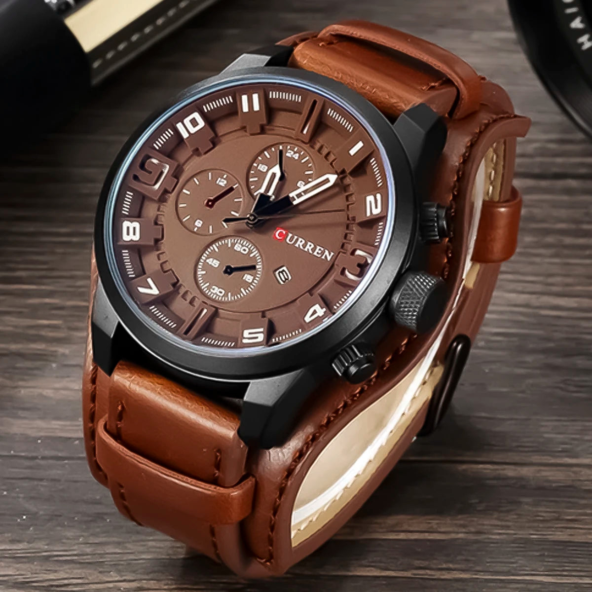 El reloj Curren (CUR-1) para hombre es una excelente opción para quienes buscan un reloj de cuarzo confiable con un diseño casual sofisticado. Su caja de acero inoxidable, combinada con una correa de cuero marrón, aporta durabilidad y comodidad para el uso diario.