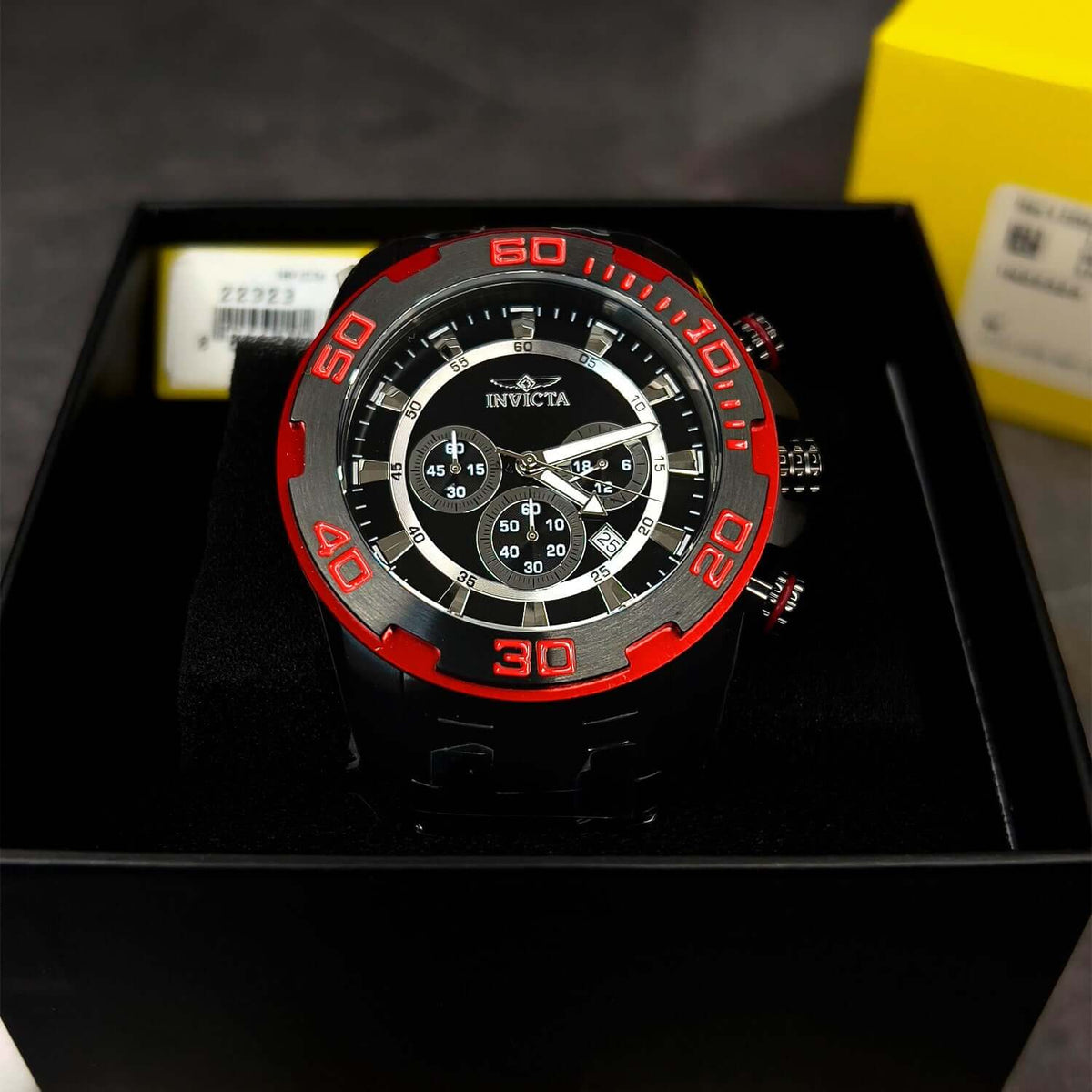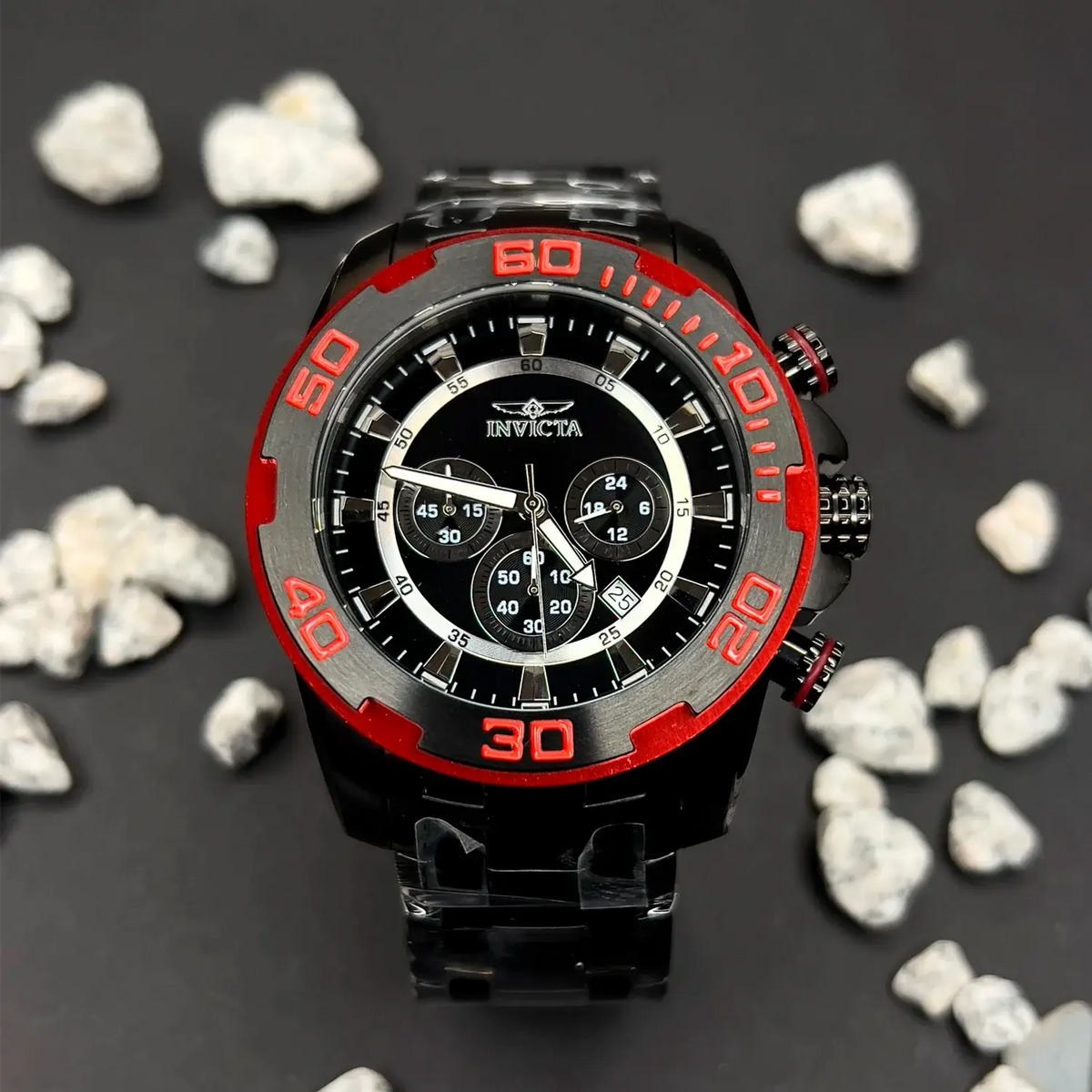 El Invicta Pro Diver 22323 (INV-347) cuenta con un caso de acero inoxidable de 50 mm y un dial negro, ofreciendo un look sofisticado y moderno. Su correa de silicona negra proporciona comodidad y durabilidad, mientras que la resistencia al agua de hasta 100 metros lo hace ideal para actividades acuáticas. Equipado con un movimiento quartz japonés, este reloj garantiza precisión y fiabilidad.