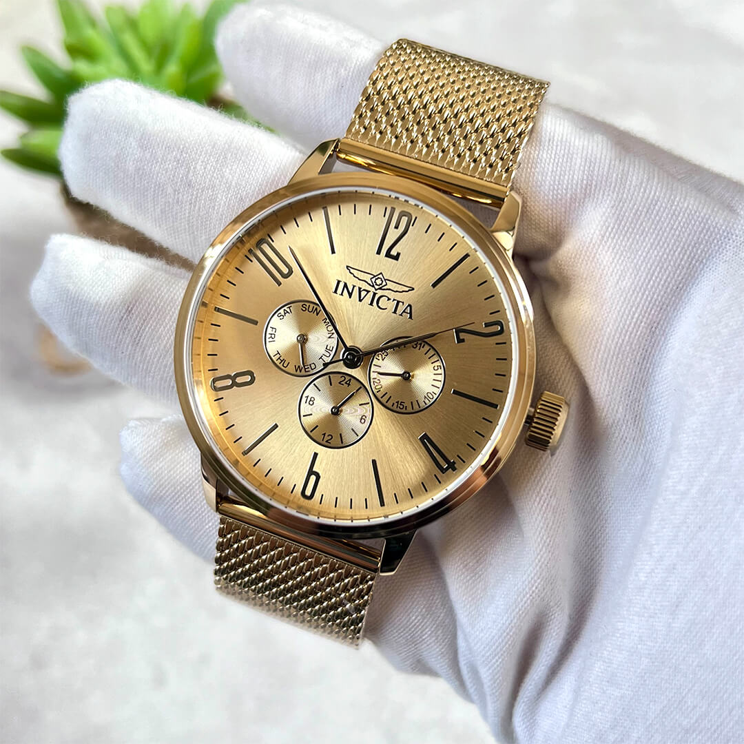 El Invicta Specialty 47615 (INV-319) no es simplemente un accesorio, es una declaración de diseño y presencia. Para quienes buscan elegancia sin renunciar a la funcionalidad, este modelo combina estética dorada, manufactura robusta y una silueta que destaca tanto en ocasión formal como informal.