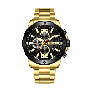 El Reloj Curren (CUR-41) para hombre combina cronógrafo funcional, calendario integrado y movimiento de cuarzo PCR dentro de una caja robusta de acero inoxidable.