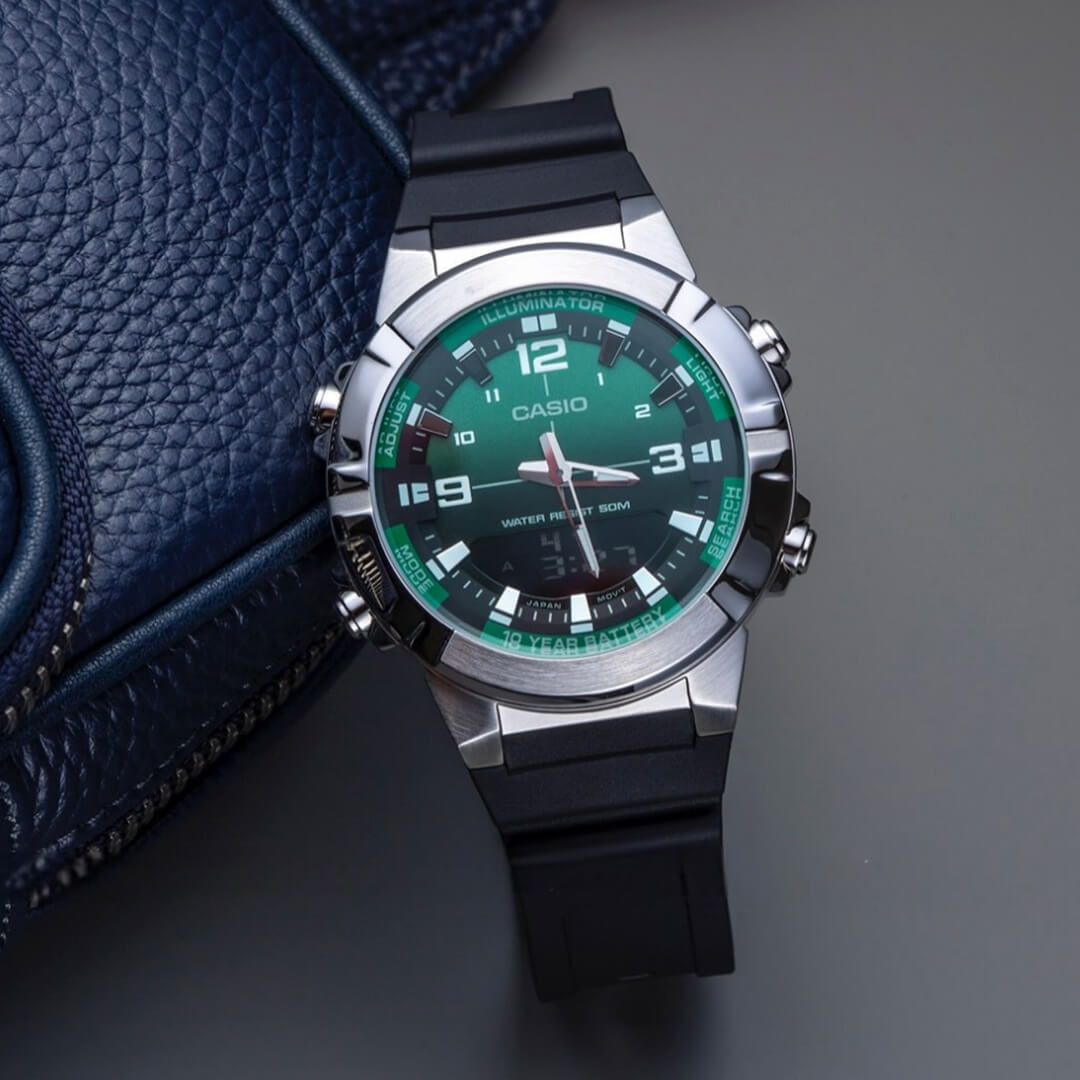 El Casio AMW-870A-3AVDF (CAS-153) es un reloj analógico-digital diseñado para quienes exigen máxima funcionalidad, resistencia y un estilo deportivo refinado. Combina una robusta caja de acero inoxidable con una correa de resina cómoda y resistente, logrando un equilibrio perfecto entre presencia, durabilidad y uso diario intensivo.