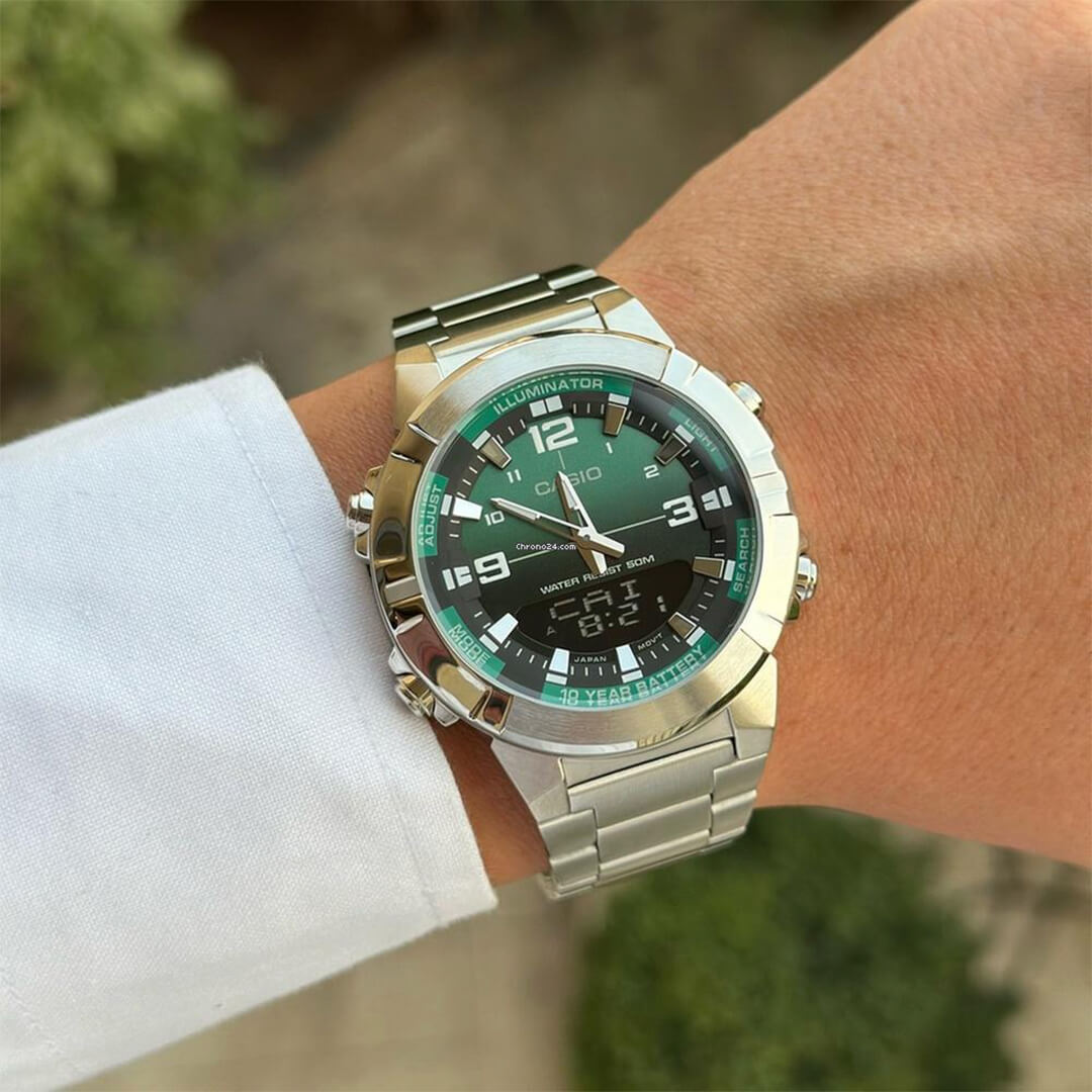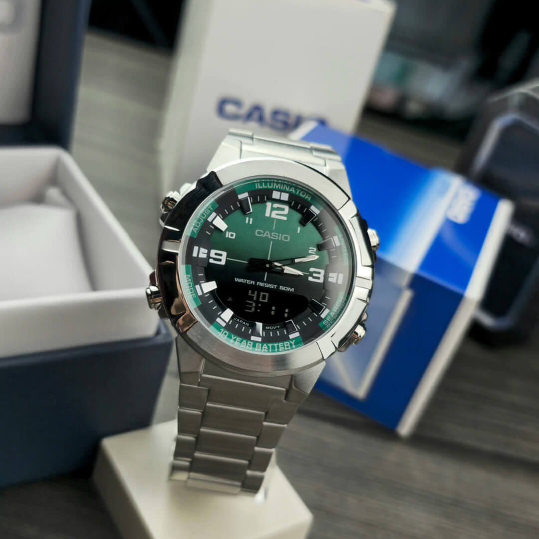 El Casio AMW-870DA-3AVDF (CAS-157) es un reloj analógico-digital diseñado para quienes exigen máxima funcionalidad, resistencia y un estilo deportivo refinado. Combina una robusta caja y correa de acero inoxidable resistente, logrando un equilibrio perfecto entre presencia, durabilidad y uso diario intensivo.