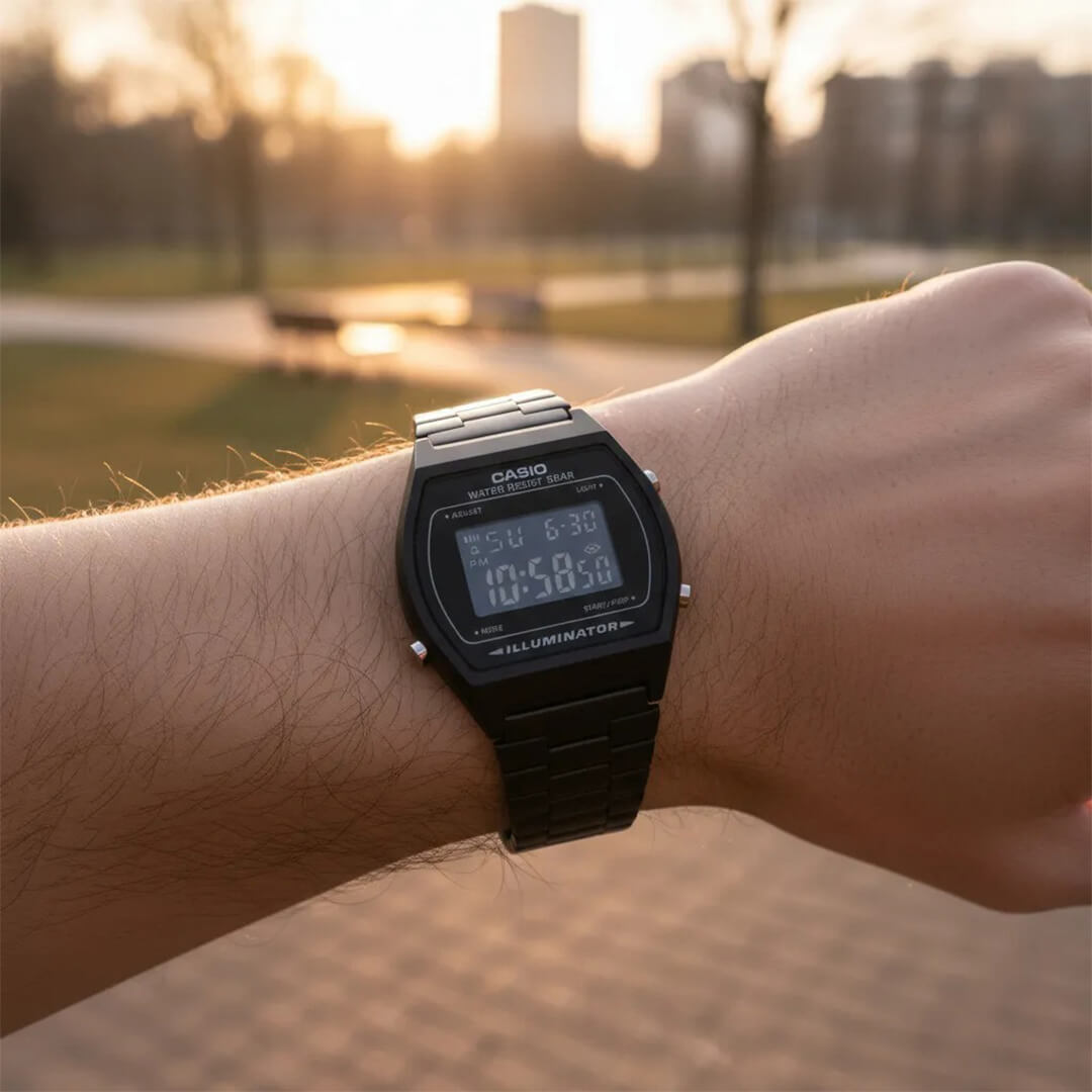 El Casio B640WB-1AD es un reloj digital de inspiración retro clásica, diseñado para quienes valoran la practicidad diaria, la estética vintage y la confiabilidad legendaria de Casio. Su diseño compacto con pulsera de acero inoxidable y pantalla digital clara lo convierten en un accesorio versátil para uso urbano, casual y cotidiano.