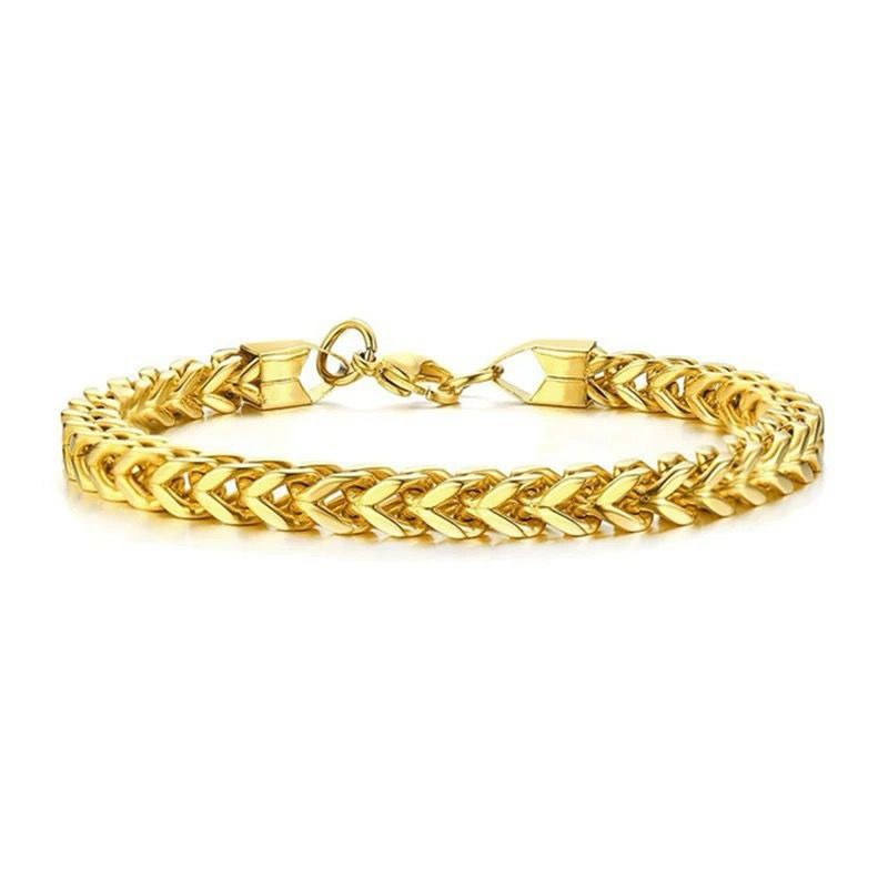 Pulsera de acero dorado modelo trenzado, brindando elegancia a tu outfit. Cuenta con un broche que asegura perfectamente la pulsera para que siempre este ceñida y asegurada.