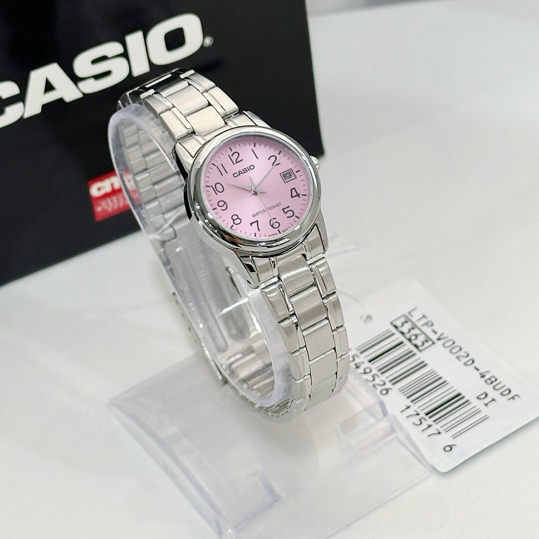 El Casio LTP-V002D-4B es la definición de elegancia práctica para el día a día. Su diseño limpio, femenino y fácil de leer lo convierte en un reloj ideal para quienes buscan estilo sin complicaciones, perfecto tanto para la oficina como para ocasiones casuales. La esfera en tono rosado aporta un toque delicado y moderno, mientras que la caja compacta realza la muñeca con discreción y buen gusto.