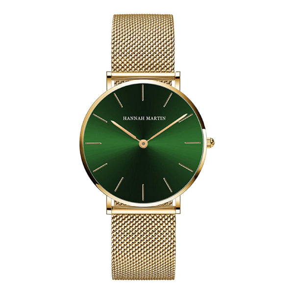 Reloj Hanna Martin Malla Dorado-Verde HAN-M-16 de moda con correa de acero inoxidable, 100% original de fábrica, garantía 1 año, el acompañante perfecto para la mujer actual.