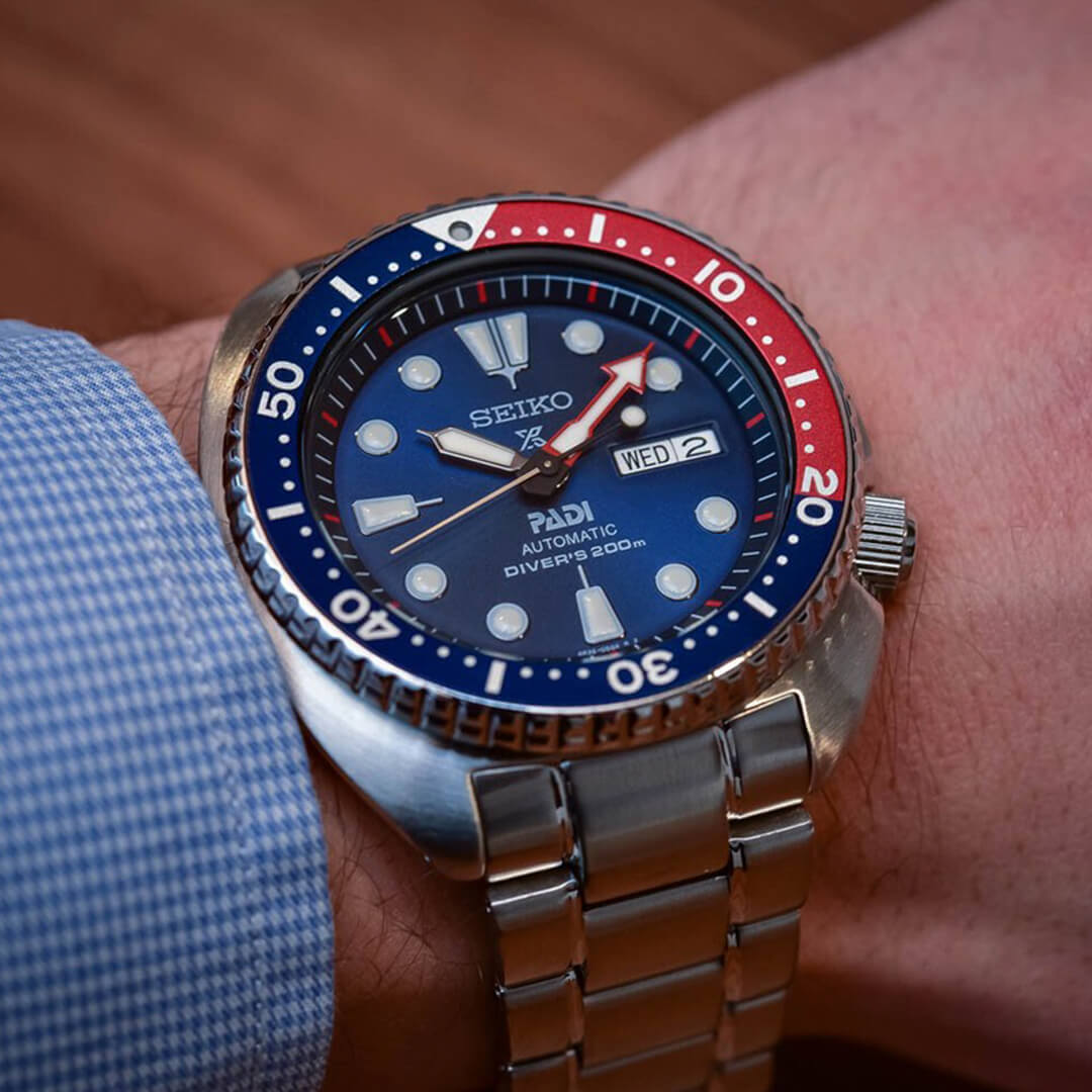 El Seiko Prospex SRPE99, parte de la familia Prospex Mar, es uno de los modelos más emblemáticos dentro de la línea de buceo de Seiko. Su combinación de colores Pepsi (rojo–azul) en el bisel lo coloca directamente entre los clásicos modernos, mientras su robusta construcción y movimiento automático lo posicionan como una herramienta real para exploradores marinos, amantes del océano y coleccionistas serios.