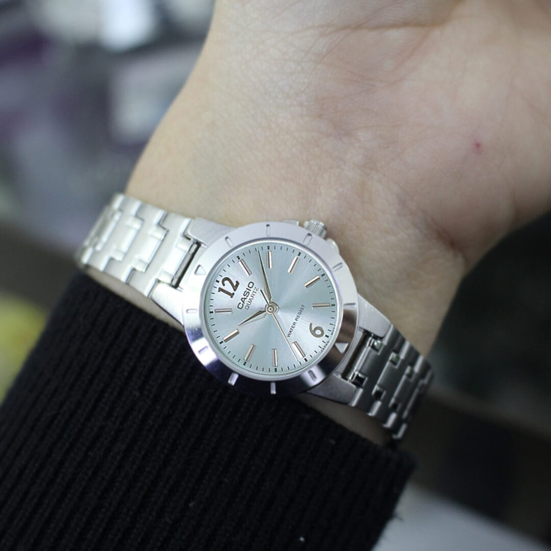 El Casio LTP-1177A-2A (CAS-M-132) es un reloj analógico femenino de diseño limpio y refinado, creado para mujeres que valoran la simplicidad elegante, la comodidad diaria y la precisión japonesa. Su tamaño compacto, combinado con una pulsera de acero inoxidable y una esfera azul suave, lo convierte en una pieza versátil para uso diario, oficina o eventos casuales.