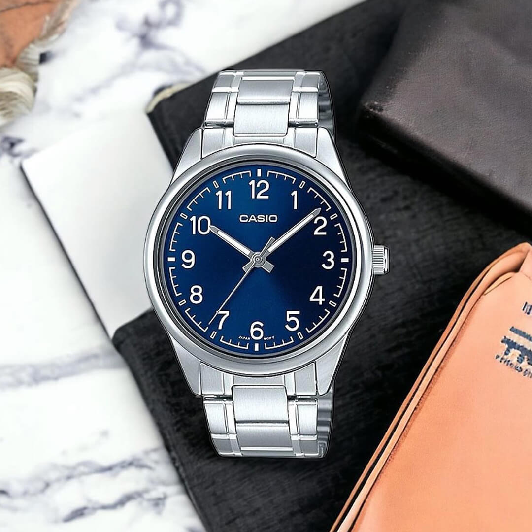 El Casio MTP-V005D-2B4 (CAS-134) es un reloj analógico de vestir diseñado para quienes buscan elegancia atemporal y confiabilidad absoluta en su día a día. Forma parte de la reconocida línea MTP-V005 de Casio, una colección pensada para acompañarte tanto en entornos profesionales como en ocasiones casuales, manteniendo siempre una imagen pulcra y bien definida.