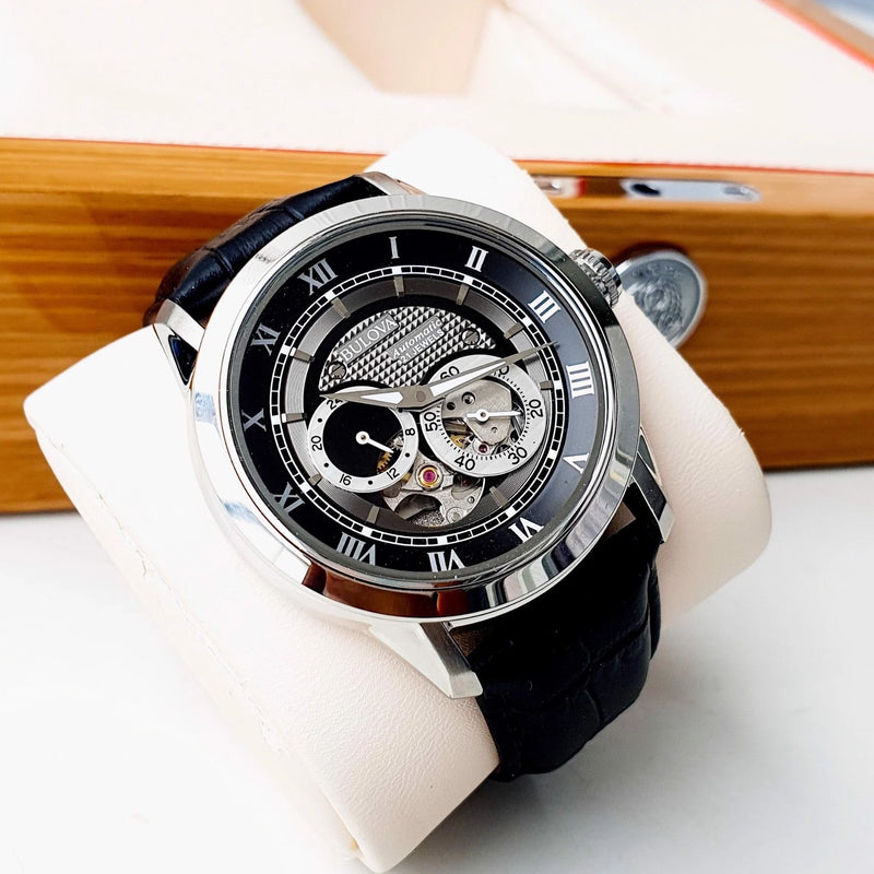 En cuanto a materiales, las correas se presentan en acero inoxidable, cuero y silicona, ofreciendo alternativas que van desde la sobriedad y resistencia hasta la comodidad y versatilidad. Los colores predominantes —gris, negro, negro con gris y plateado— refuerzan la personalidad masculina de la colección, transmitiendo carácter y distinción en cada detalle. Con esta variedad, Bulova logra relojes que se ajustan a distintos estilos sin perder su esencia de calidad y prestigio.