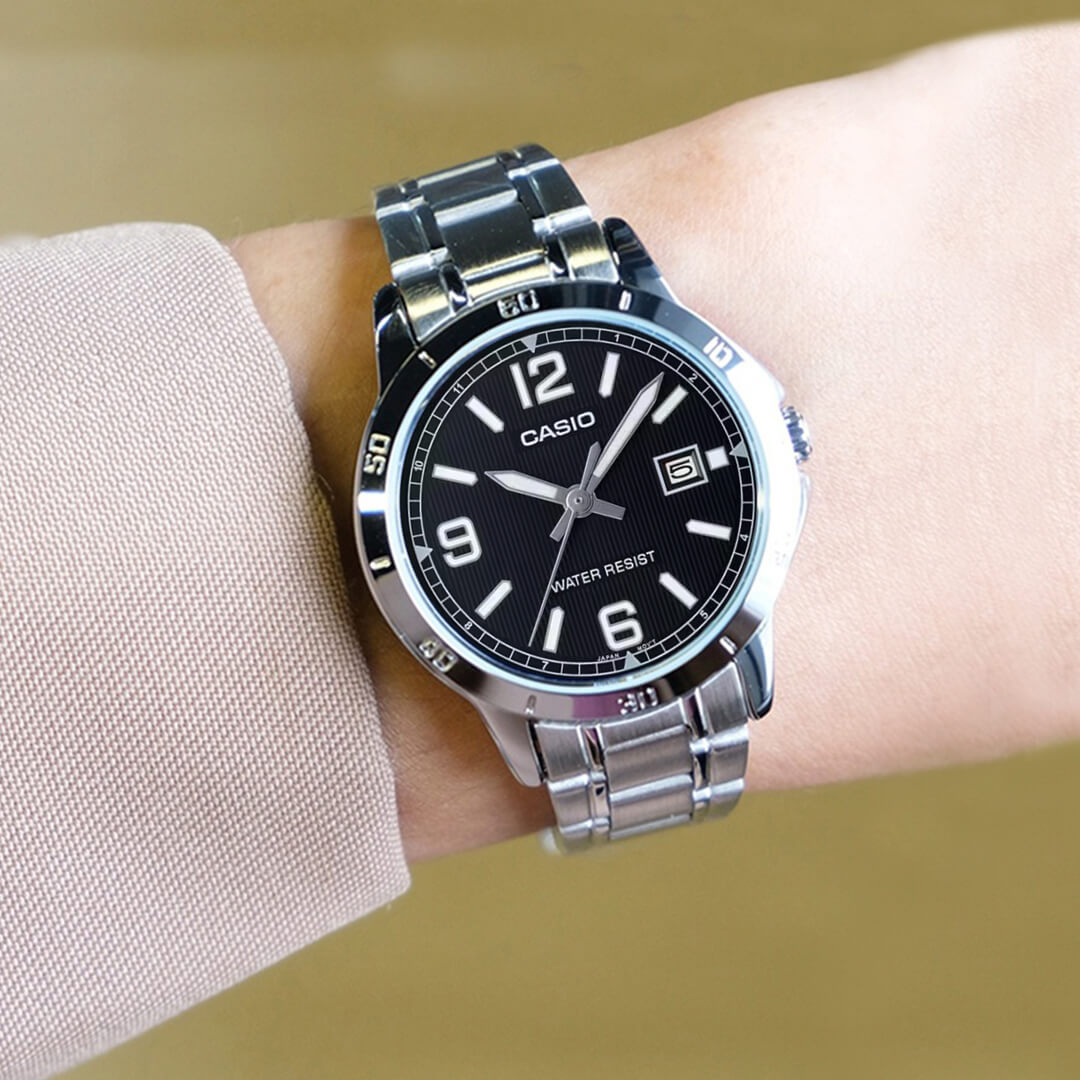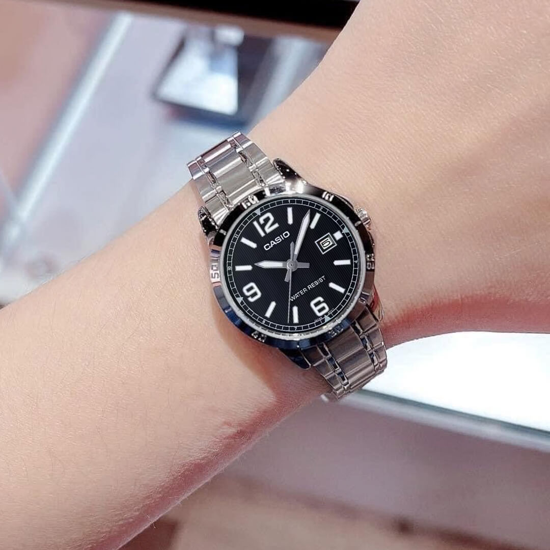 El Casio LTP-V004D-1B2 (CAS-M-109) redefine el concepto de reloj femenino con una propuesta que une sofisticación, funcionalidad y durabilidad japonesa. Su diseño atemporal en acero inoxidable combina con una esfera negra refinada, creando un contraste visual elegante que transmite carácter, equilibrio y distinción.