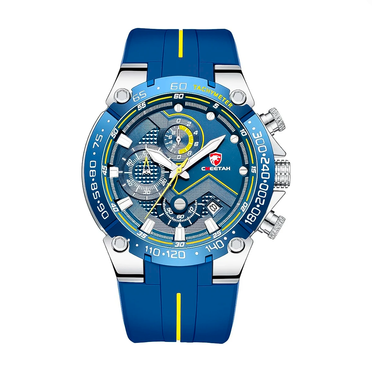 Reloj Cheetah Azul con Plateado CHT-1 de moda con correa de silicona, 100% original de fábrica, garantía 1 año, el acompañante perfecto para el hombre actual.