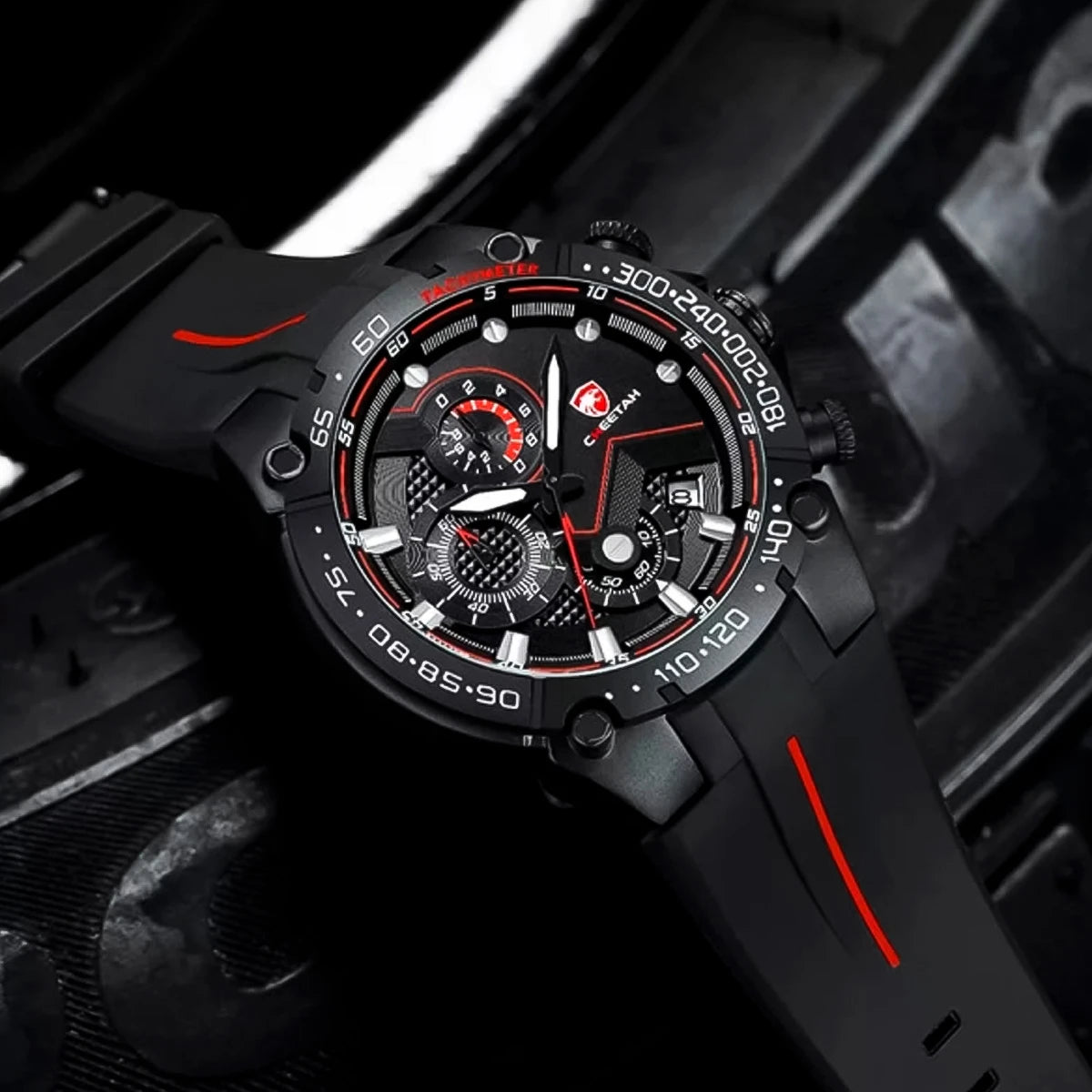 Reloj Cheetah Negro con Rojo CHT-3 de moda con correa de silicona, 100% original de fábrica, garantía 1 año, el acompañante perfecto para el hombre actual.