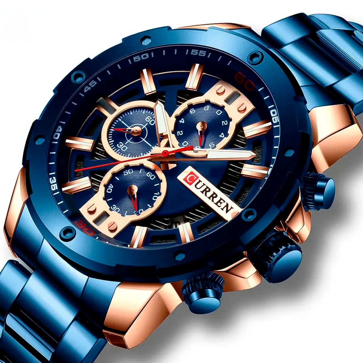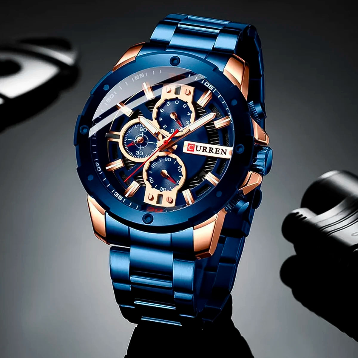 Reloj Curren Elegante Azul-Oro Rosa CUR-41 de moda con correa de acero, 100% original de fábrica, garantía 1 año, el acompañante perfecto para el hombre actual.