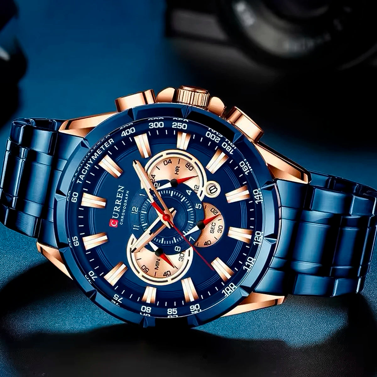 Reloj Curren Elegante Azul-Oro rosa CUR-5 de moda con correa de acero, 100% original de fábrica, garantía 1 año, el acompañante perfecto para el hombre actual.