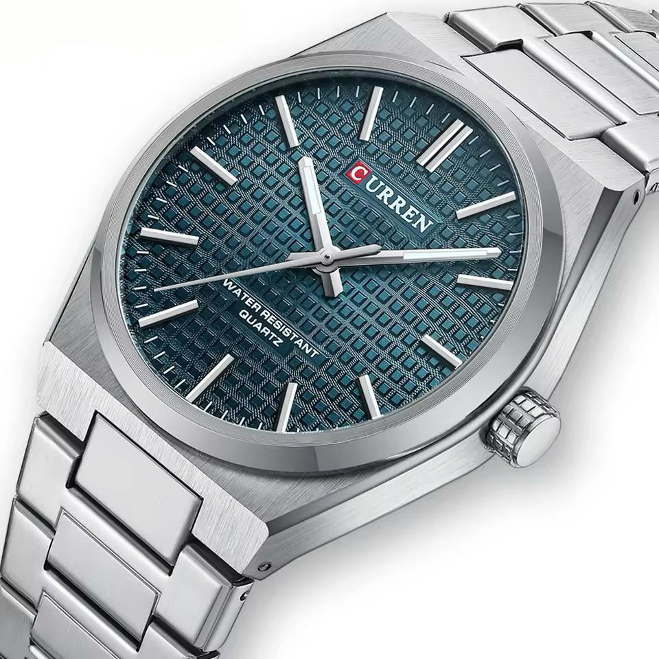 Reloj Curren Elegante Plateado CUR-25 de moda con correa de acero, 100% original de fábrica, garantía 1 año, el acompañante perfecto para el hombre actual.