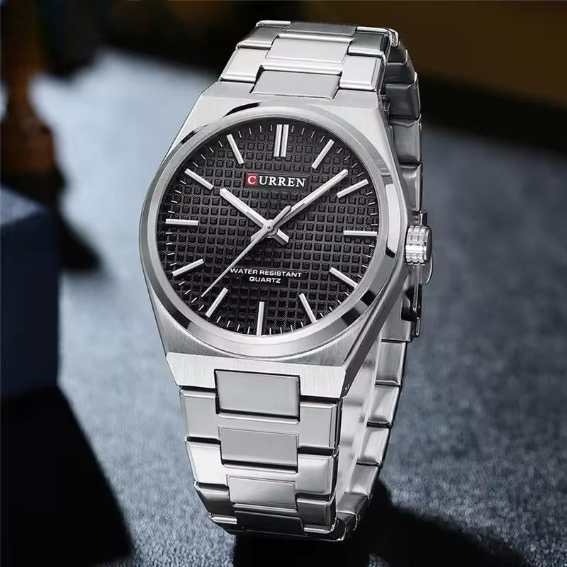Reloj Curren Elegante Plateado CUR-26 de moda con correa de acero, 100% original de fábrica, garantía 1 año, el acompañante perfecto para el hombre actual.