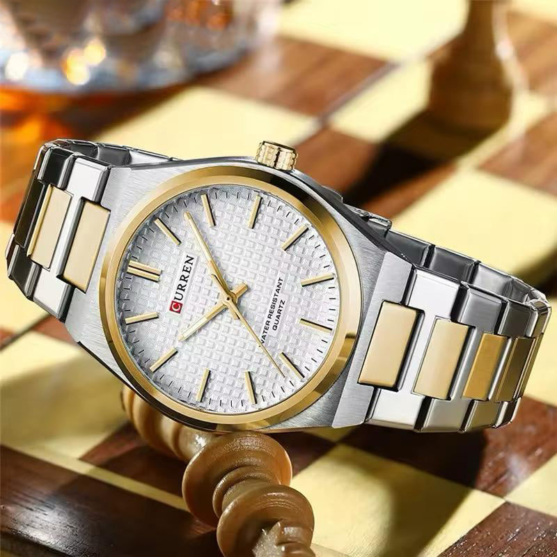Reloj Curren Elegante Plateado con Dorado CUR-27 de moda con correa de acero, 100% original de fábrica, garantía 1 año, el acompañante perfecto para el hombre actual.