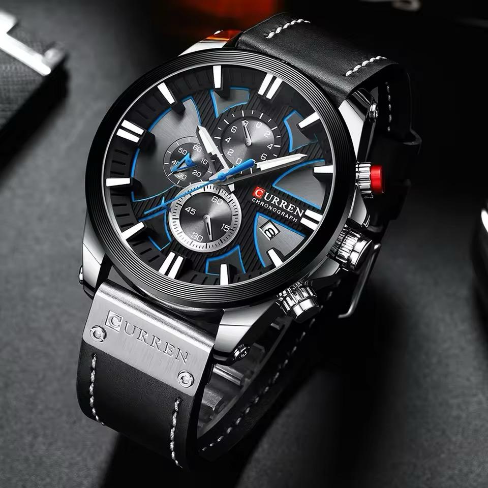 Reloj Curren Casual Negro CUR-30 de moda con correa de cuero, 100% original de fábrica, garantía 1 año, el acompañante perfecto para el hombre actual.