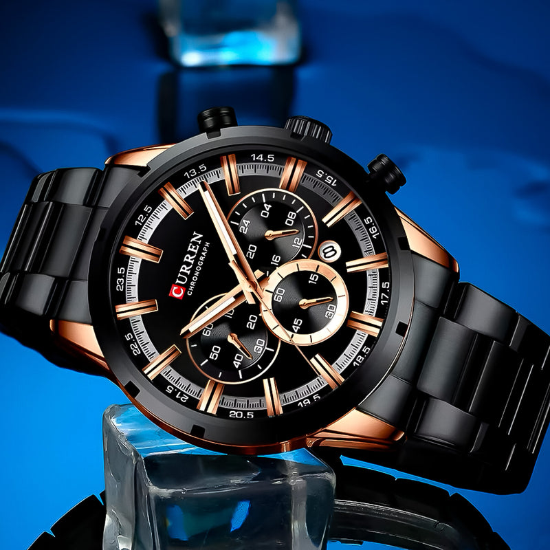 Reloj Curren CUR-24 Hombre Acero Negro y Oro Rosa