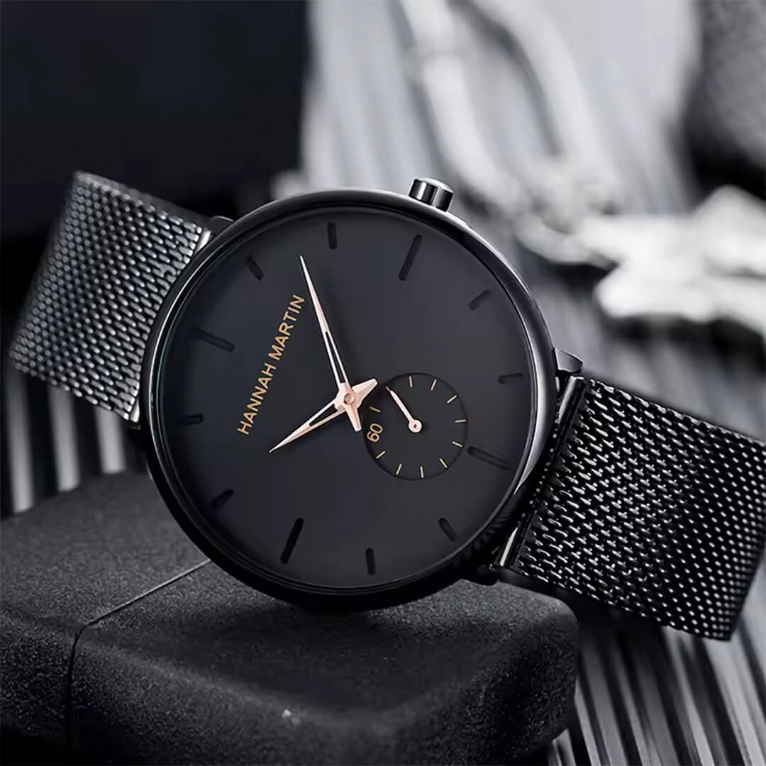 El Hannah Martin (HAN-3) es una pieza diseñada para elevar cualquier look masculino. Su caja de 42 mm, su correa de acero inoxidable y su cristal antirayaduras garantizan un uso cómodo, resistente y elegante.