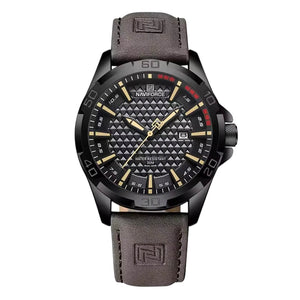 El movimiento de cuarzo de alta precisión asegura una medición confiable del tiempo, mientras que las manecillas e indicadores luminosos mejoran la visibilidad en condiciones de poca luz. La correa de cuero aporta comodidad y un ajuste firme, adecuada para largas jornadas.