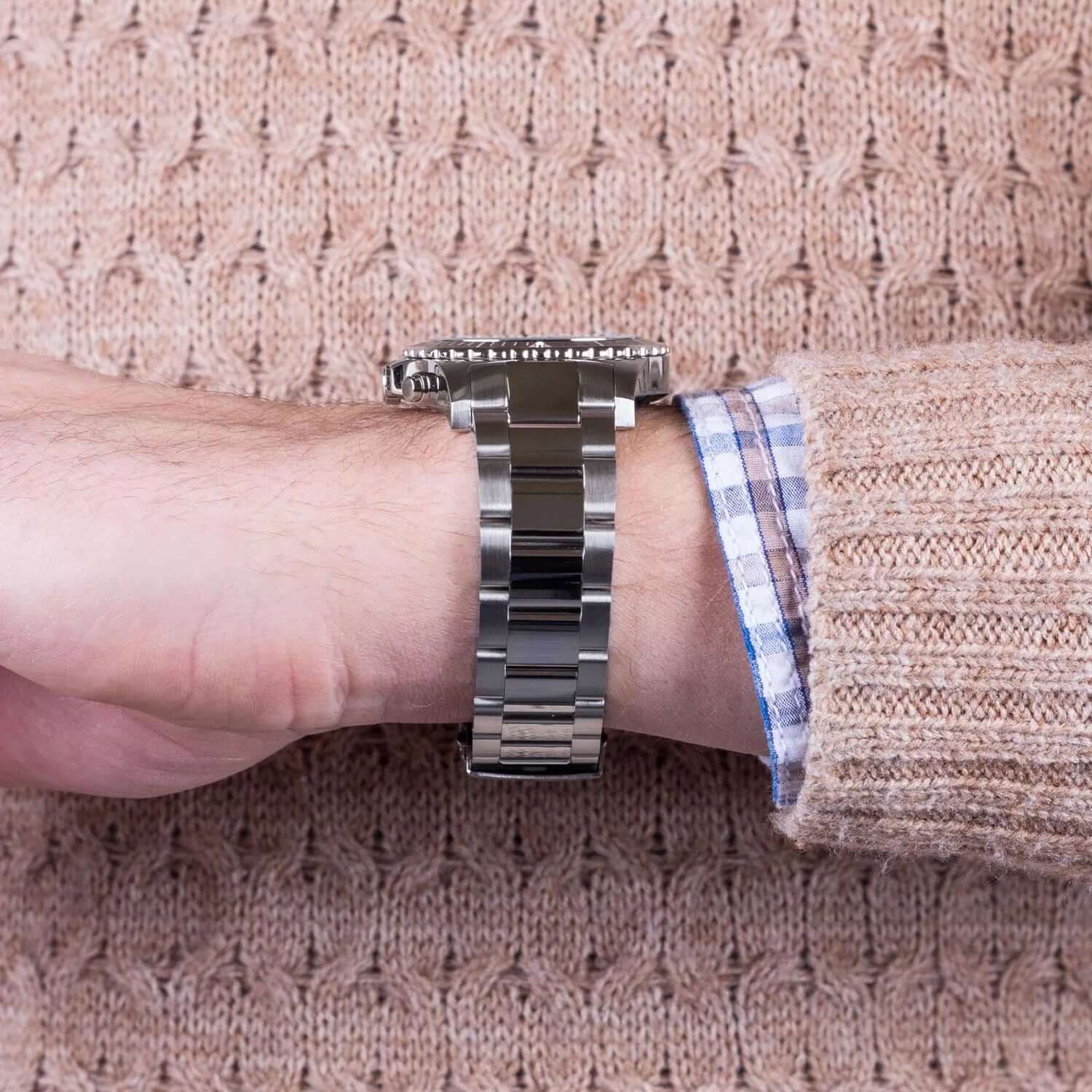 - Estilo atemporal: combina el plateado del acero con el contraste del dial negro, perfecto para el hombre sofisticado.