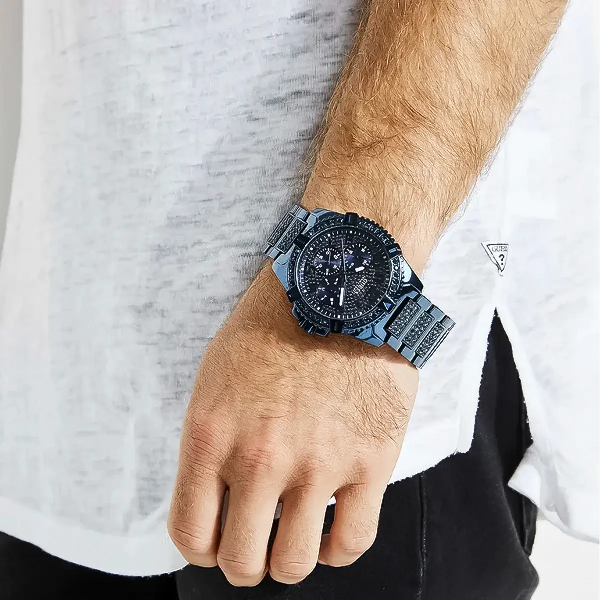 Reloj Guess azul GUE-17 de moda con correa de acero inoxidable, 100% original de fábrica, garantía 1 año, el acompañante perfecto para el hombre actual.