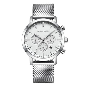 El Hannah Martin (HAN-22) combina estética empresarial con función deportiva. Su diseño dorado y construcción metálica lo convierten en un reloj versátil: elegante para oficina, resistente para el día a día y con funciones útiles como cronógrafo y calendario. Un modelo que entrega presencia, precisión y durabilidad sin elevar demasiado el costo.