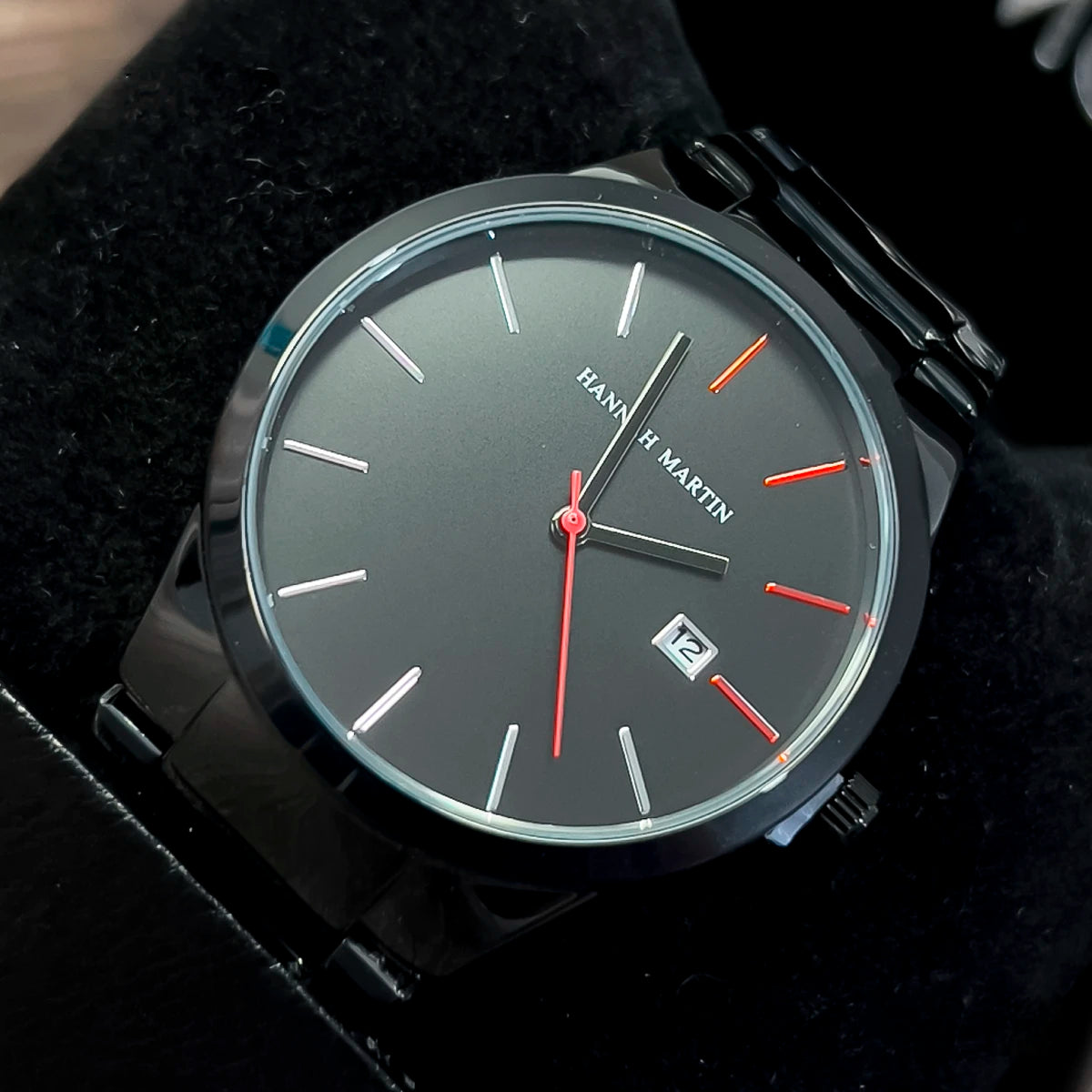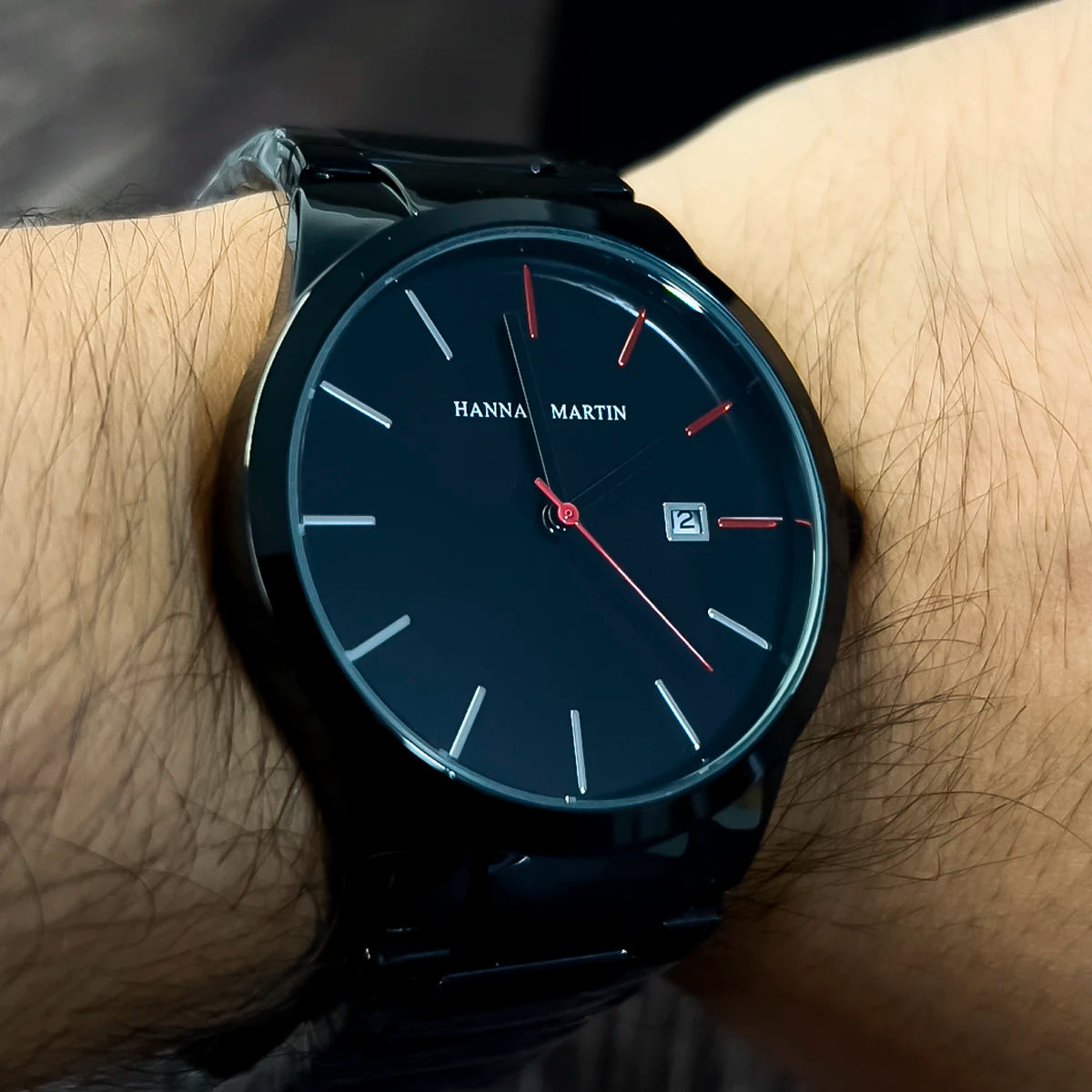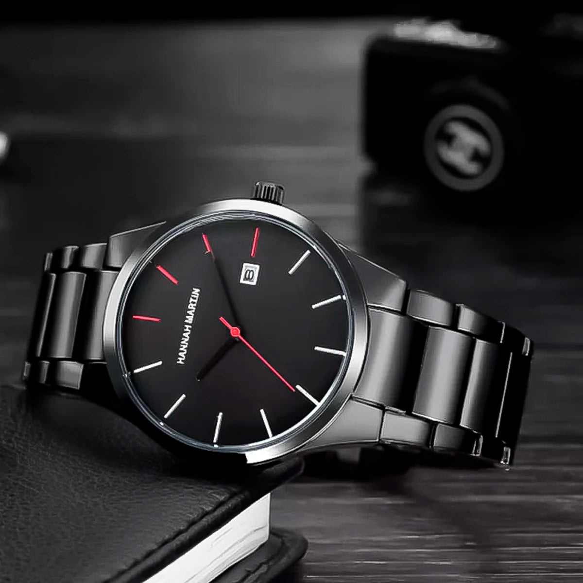 Reloj Hannah Martin Negro con rojo HAN-18 de moda con correa de acero inoxidable, 100% original de fábrica, garantía 1 año, el acompañante perfecto para la hombre actual.