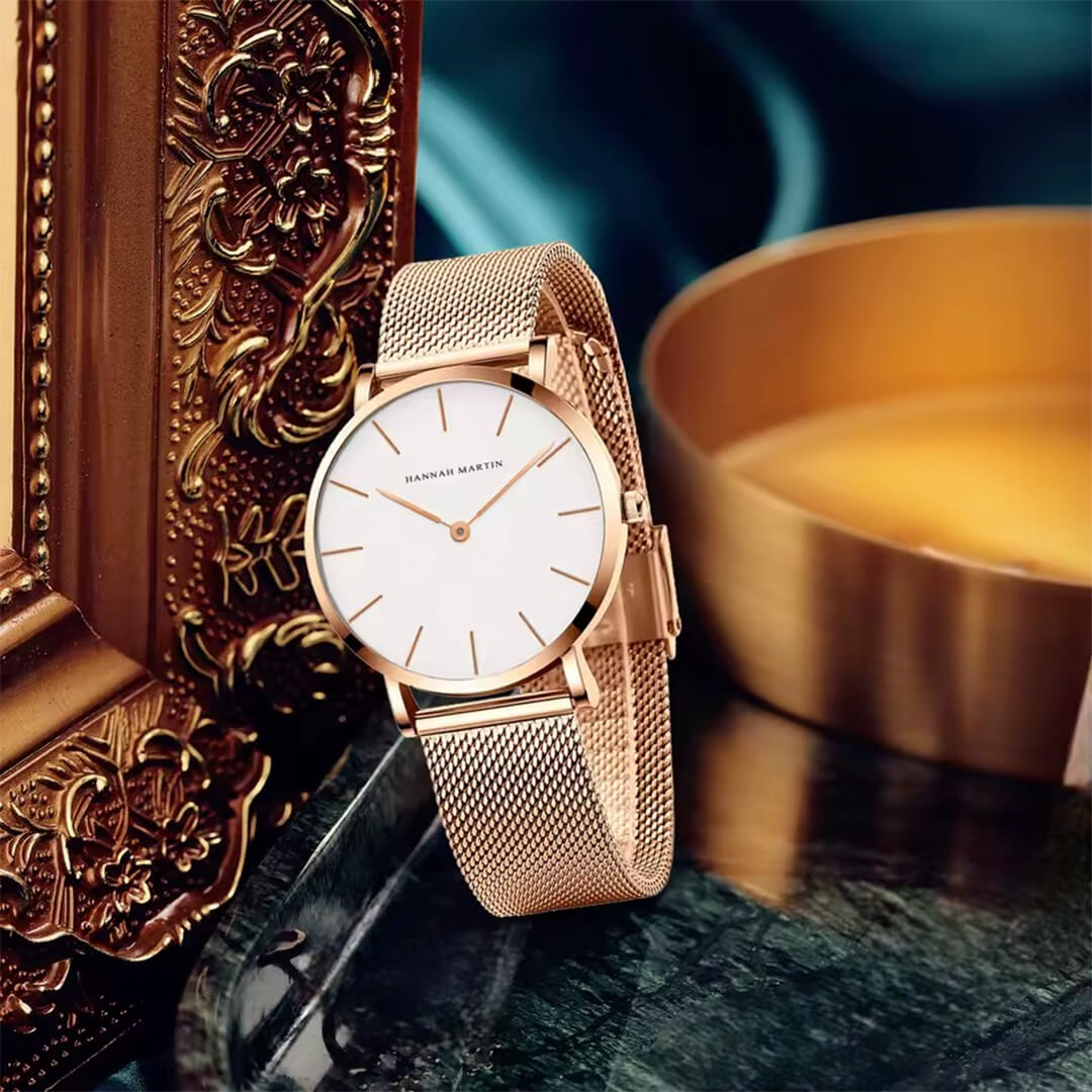 El Hannah Martin (HAN-1) destaca como un reloj de estética sobria, fina y moderna. Su caja de 40 mm, su correa de acero inoxidable y su cristal antirayaduras garantizan una presencia elegante sin sacrificar resistencia.