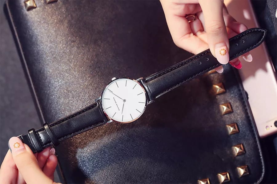 Reloj Hanna Martin Cuero Negro con Blanco HAN-M-11 de moda con correa de acero inoxidable, 100% original de fábrica, garantía 1 año, el acompañante perfecto para la mujer actual.