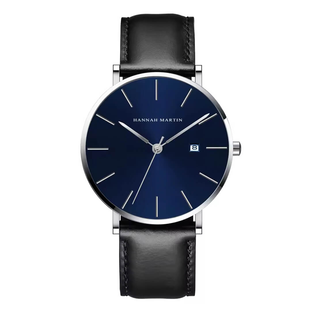 Reloj Hannah Martin acero color negro con azul HAN-41 de moda con correa de cuero, 100% original de fábrica, garantía 1 año, el acompañante perfecto para el hombre actual.