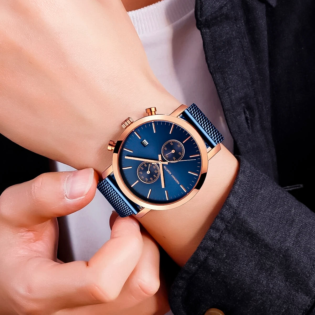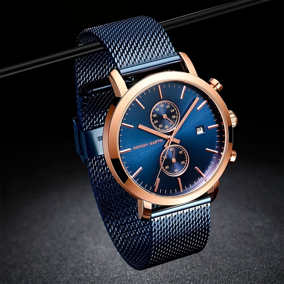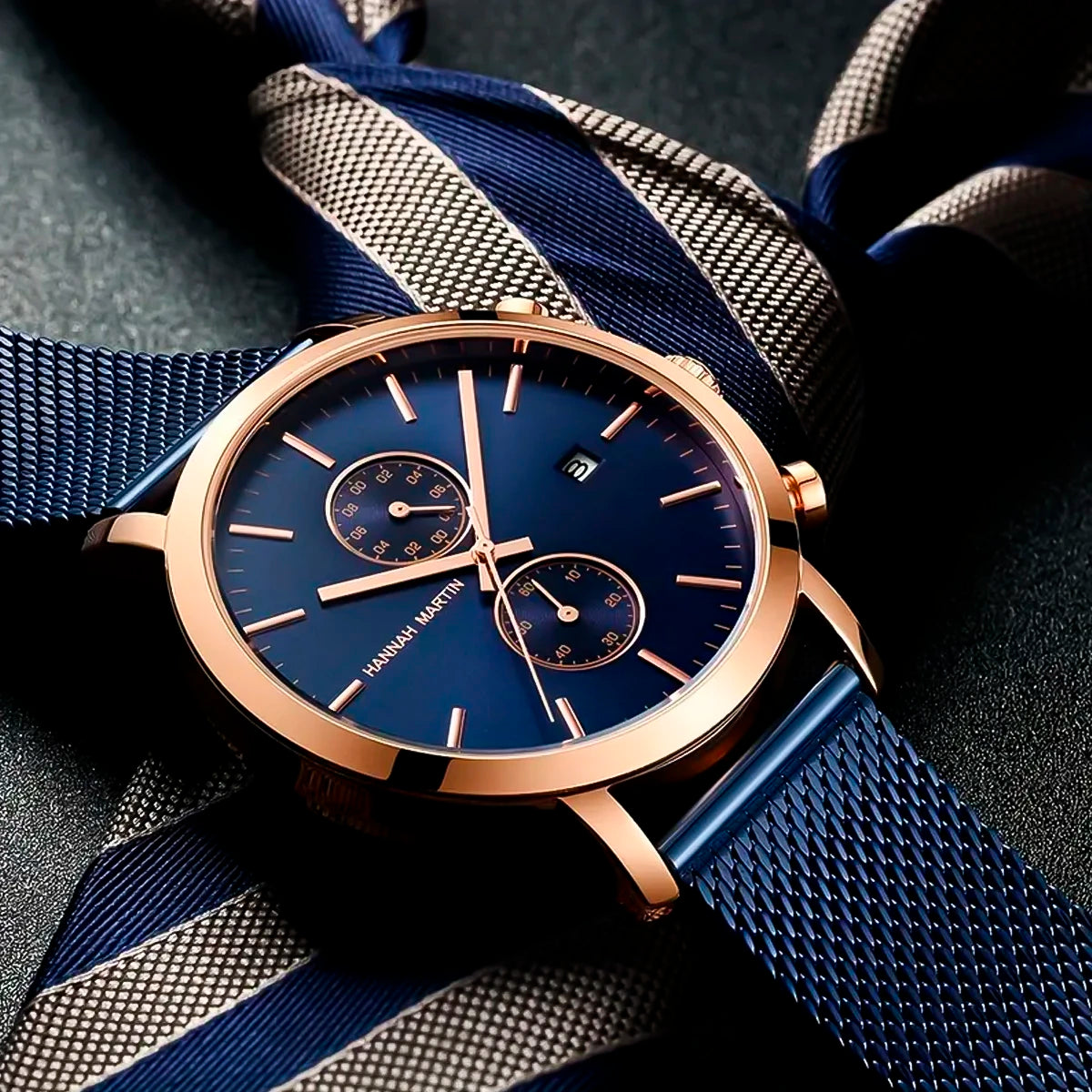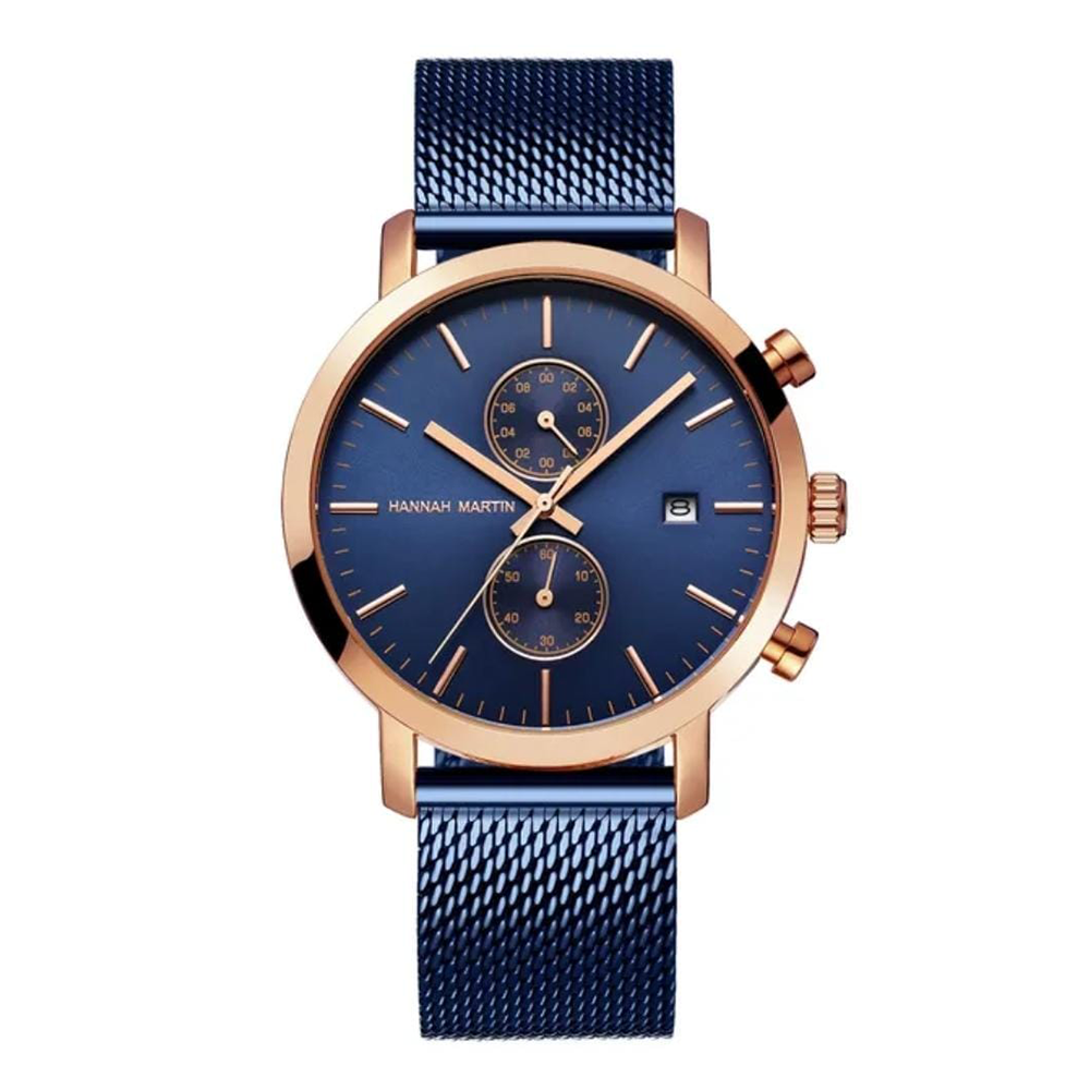 Reloj Hannah Martin malla azul HAN-25 de moda con correa de acero inoxidable, 100% original de fábrica, garantía 1 año, el acompañante perfecto para el hombre actual.
