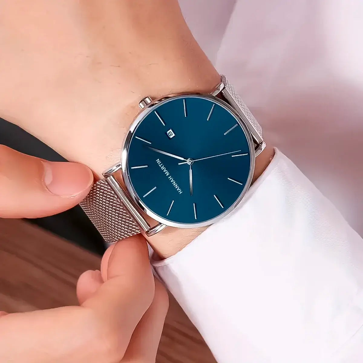 Reloj Hannah Martin plateado azul HAN-32 de moda con correa de acero inoxidable, 100% original de fábrica, garantía 1 año, el acompañante perfecto para el hombre actual.