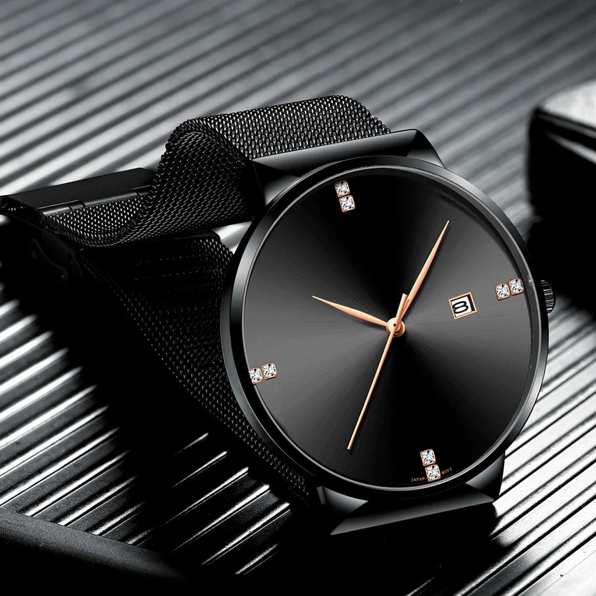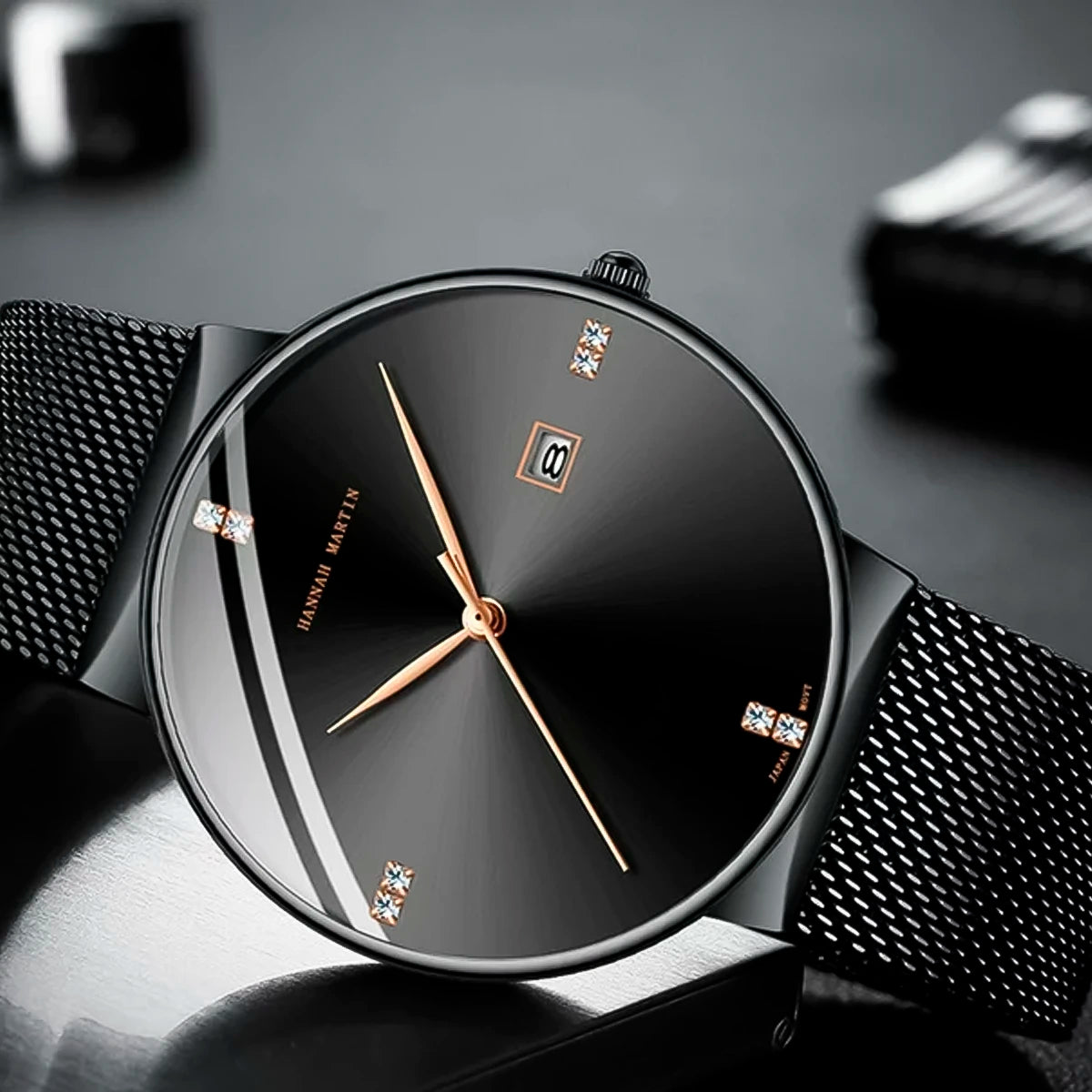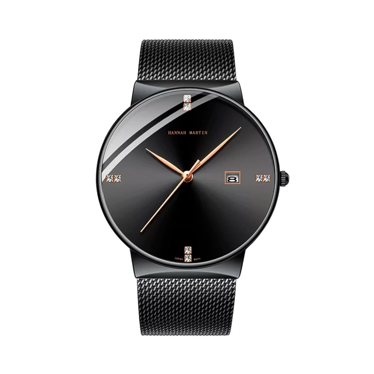 Reloj Hannah Martin zircon negrocon oro HAN-30 de moda con correa de acero inoxidable, 100% original de fábrica, garantía 1 año, el acompañante perfecto para el hombre actual.
