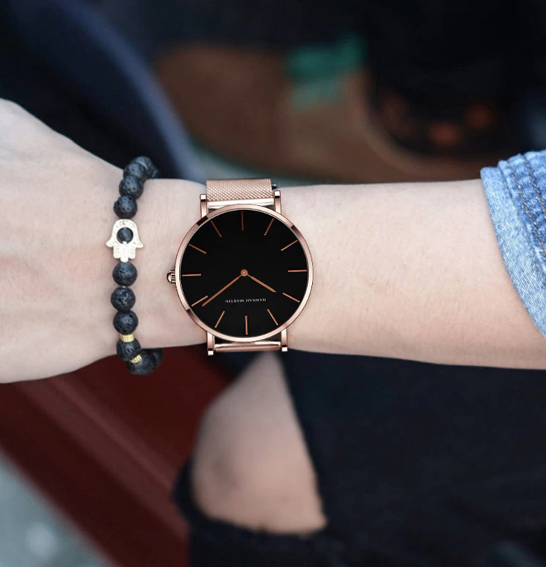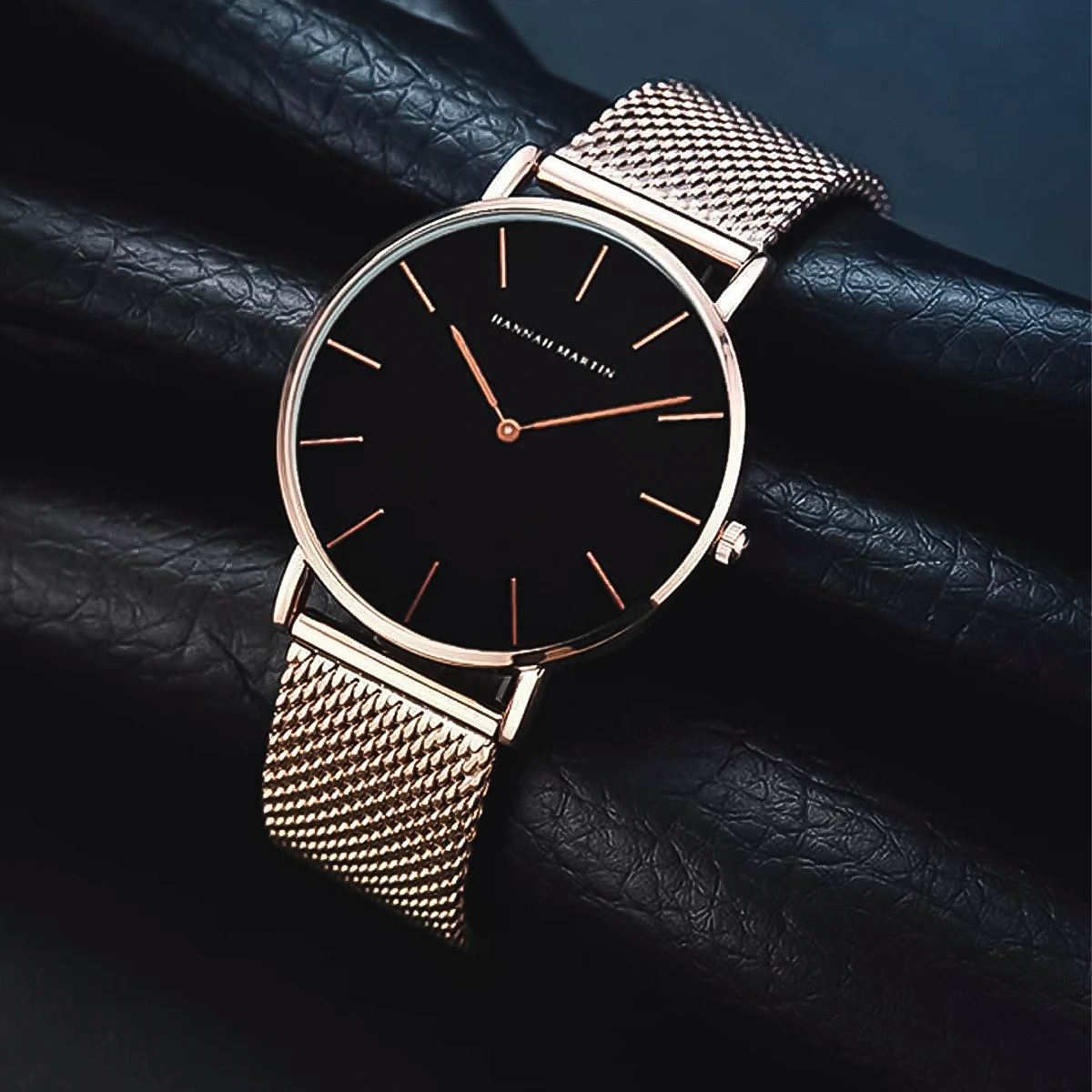 Reloj Hannah Martin Oro rosa-Negro HAN-7 de moda con correa de acero inoxidable, 100% original de fábrica, garantía 1 año, el acompañante perfecto para la hombre actual.