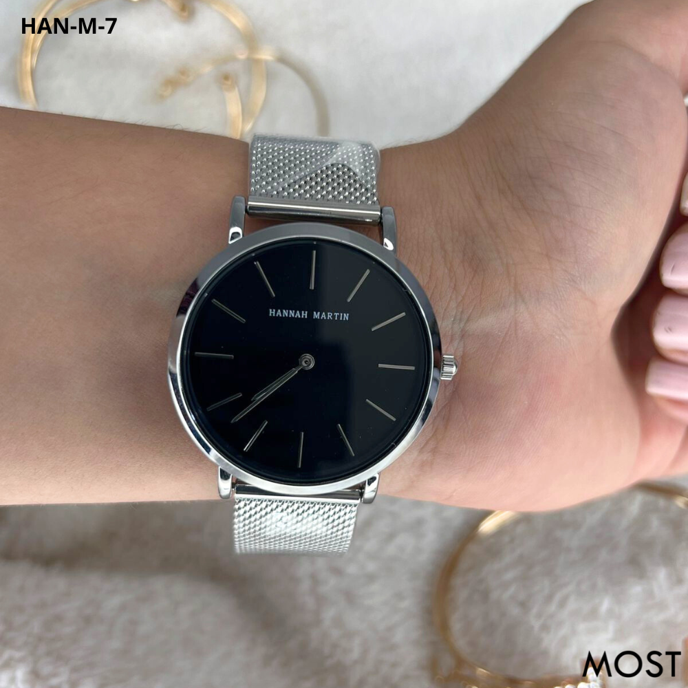 Reloj Hanna Martin Malla Plateado Fondo Negro HAN-M-7de moda con correa de acero inoxidable, 100% original de fábrica, garantía 1 año, el acompañante perfecto para la mujer actual.