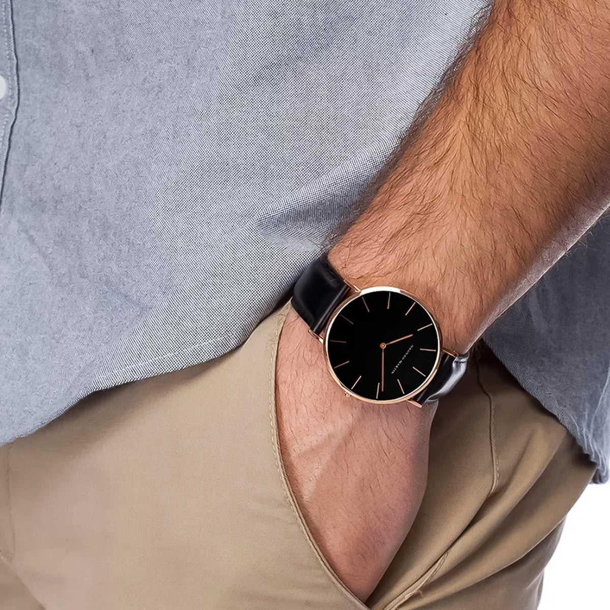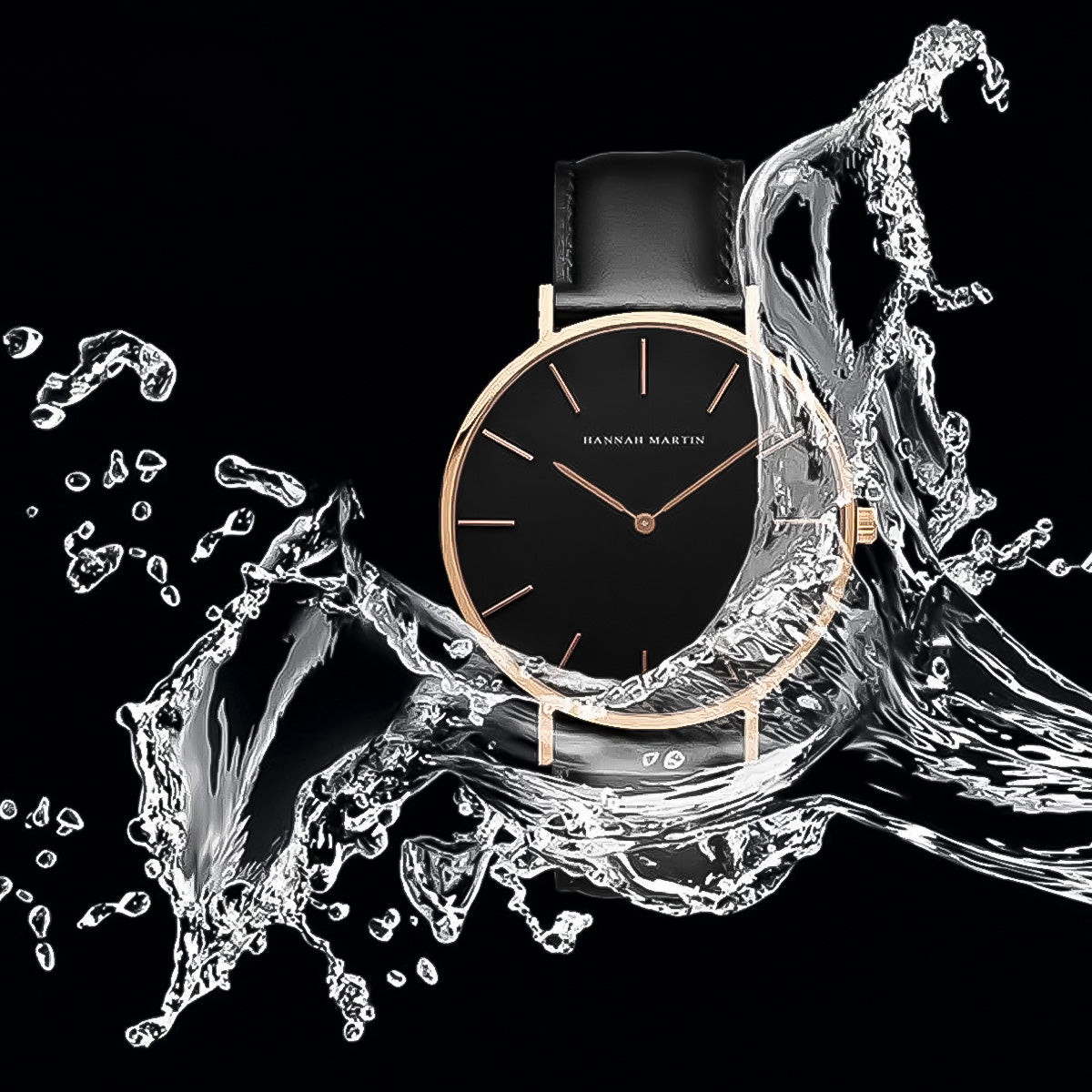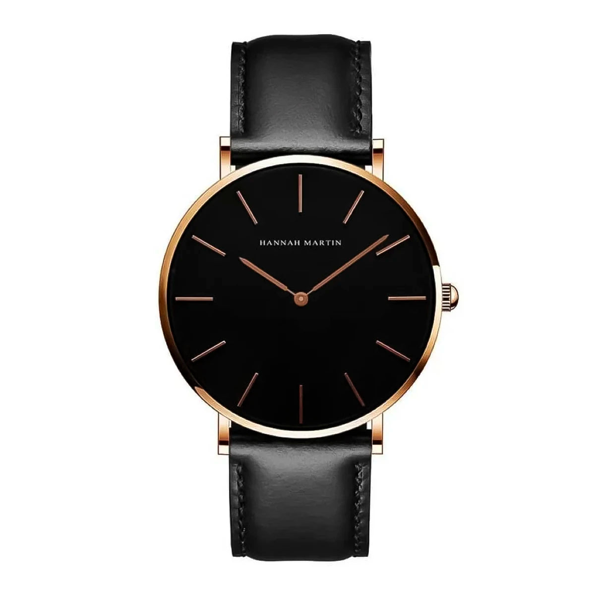 Reloj Hannah Martin Negro-Oro Rosa HAN-12 de moda con correa de cuero, 100% original de fábrica, garantía 1 año, el acompañante perfecto para la hombre actual.