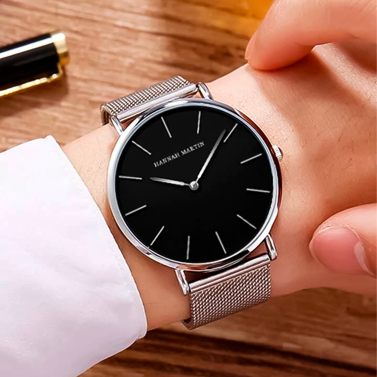 Reloj Hannah Martin Plateado-Negro HAN-8 de moda con correa de acero inoxidable, 100% original de fábrica, garantía 1 año, el acompañante perfecto para la hombre actual.