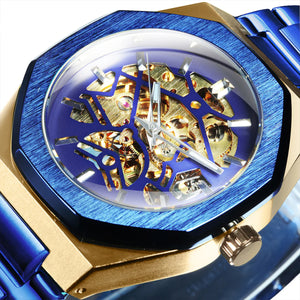 El Reloj Forsining (FOR-31) mecánico automático para hombre destaca por su diseño octogonal exclusivo, su esfera esqueleto dorada y su estructura de acero inoxidable, convirtiéndose en una pieza de lujo moderno ideal para negocios y estilo urbano premium.