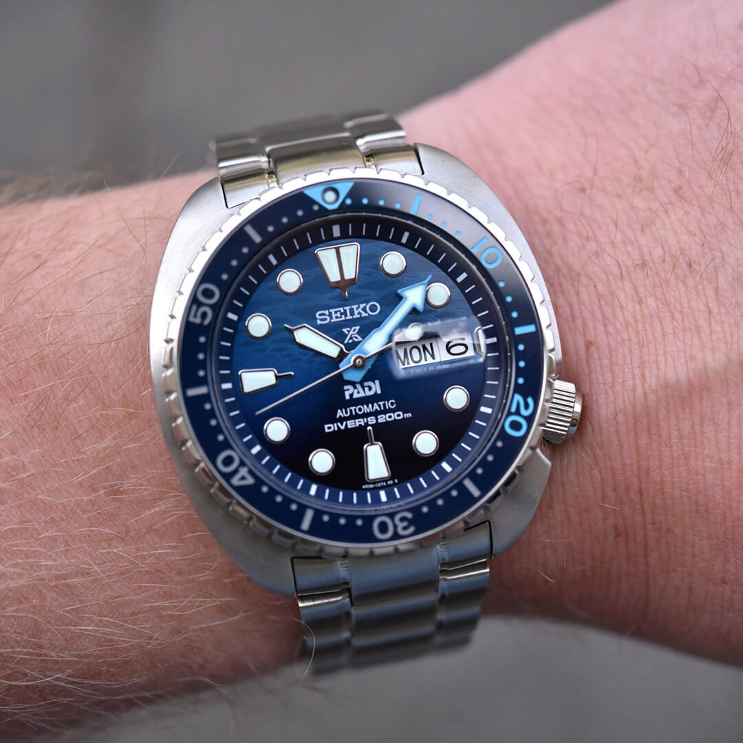 - Lumibrite en manecillas, numerales y bisel — Lectura impecable bajo el agua o en la noche.
