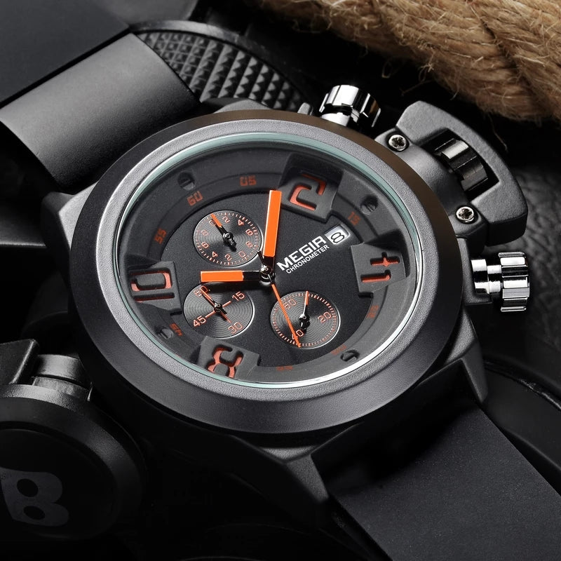 Reloj Megir deportivo MEG-18 de moda con correa de silicona, 100% original de fábrica, garantía 1 año, el acompañante perfecto para el hombre actual.