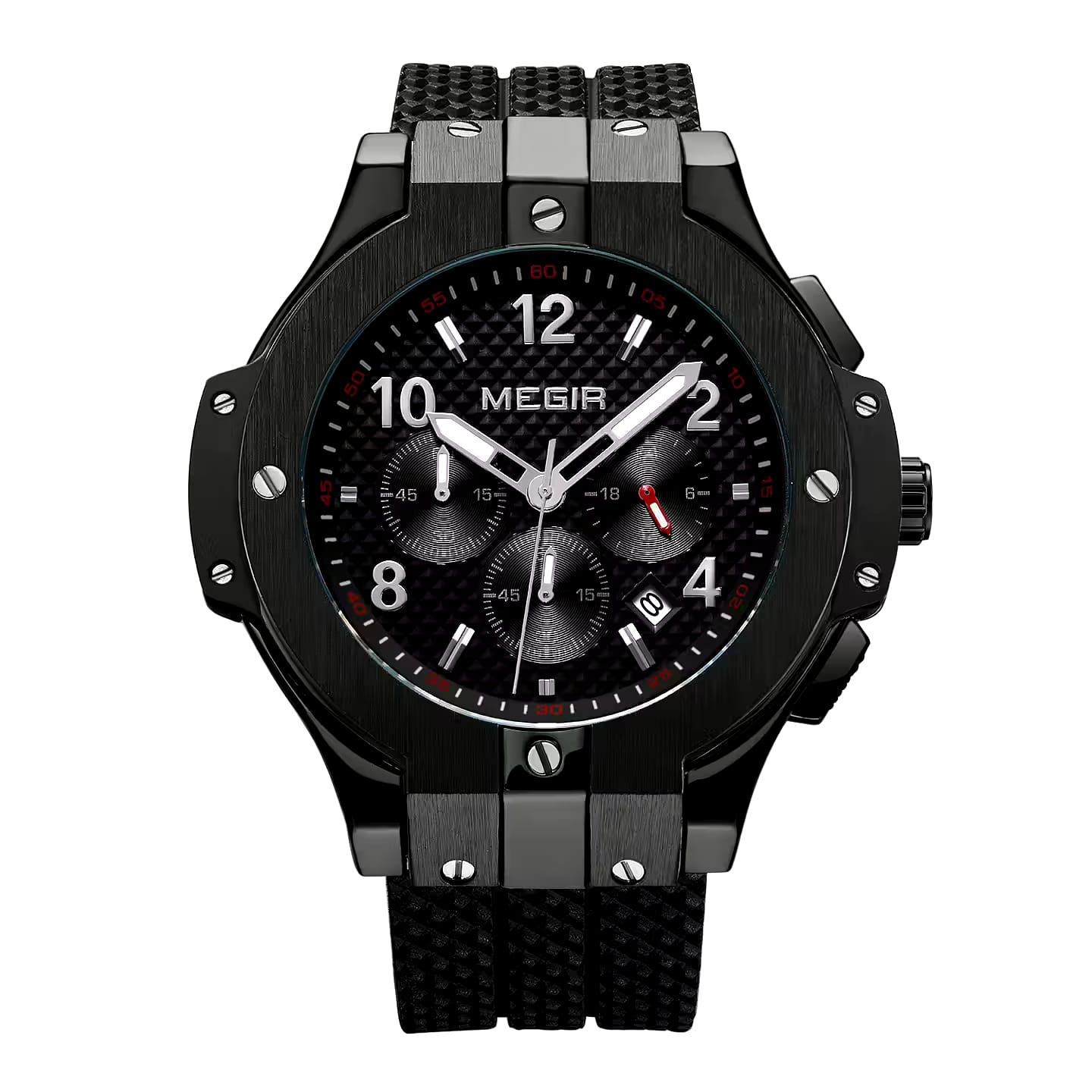Reloj Megir negro MEG-64 de moda con correa de silicona, 100% original de fábrica, garantía 1 año, el acompañante perfecto para el hombre actual.