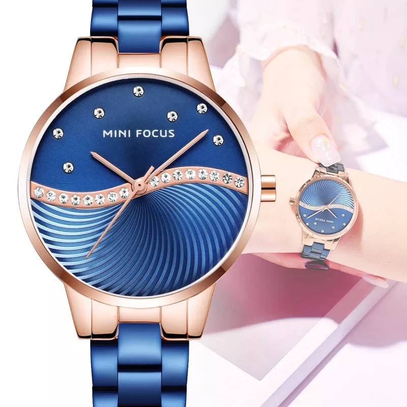 Reloj Minifocus Elegante Azul MIN-M-4 de moda con correa de acero, 100% original de fábrica, garantía 1 año, el acompañante perfecto para la mujer actual.
